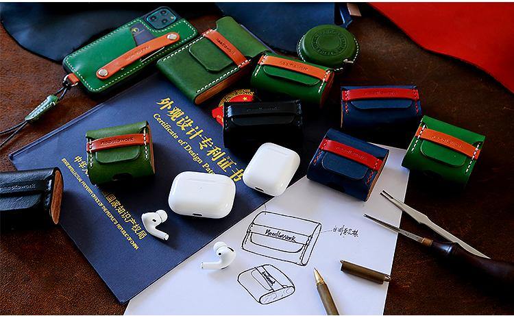 Design: Best Blue Leather AirPods 1&2 Case Custom Leather Wood AirPods 1&2 Case Airpod Case Cover Personalized Airpod Case