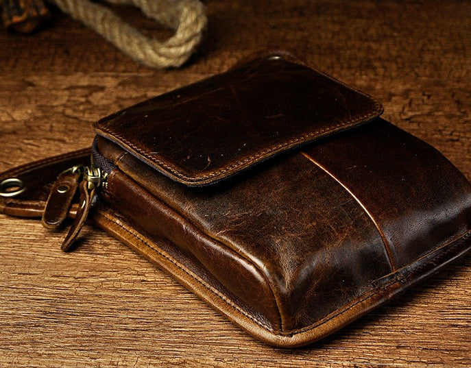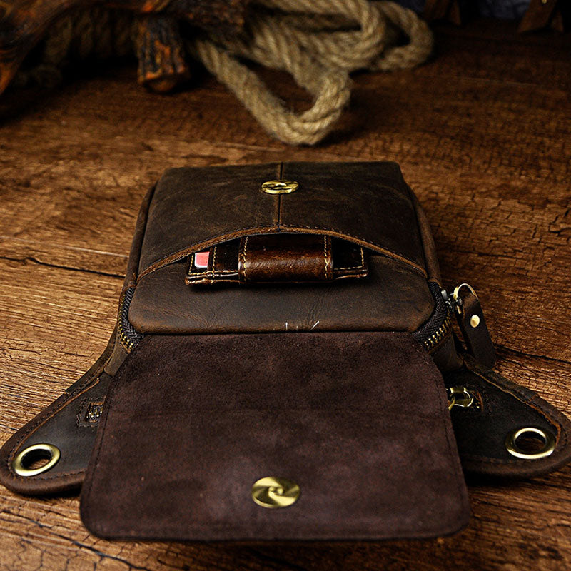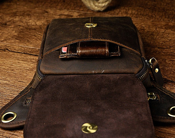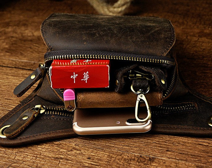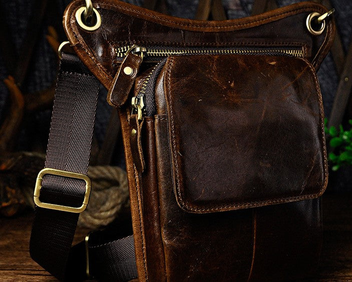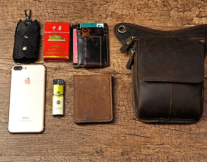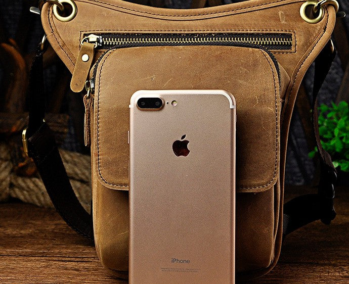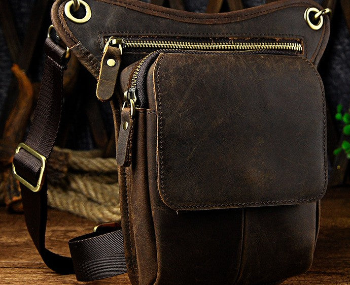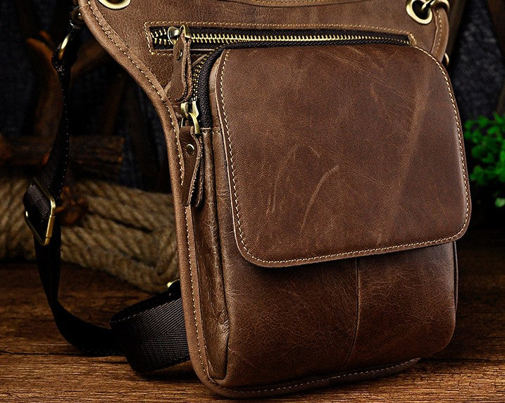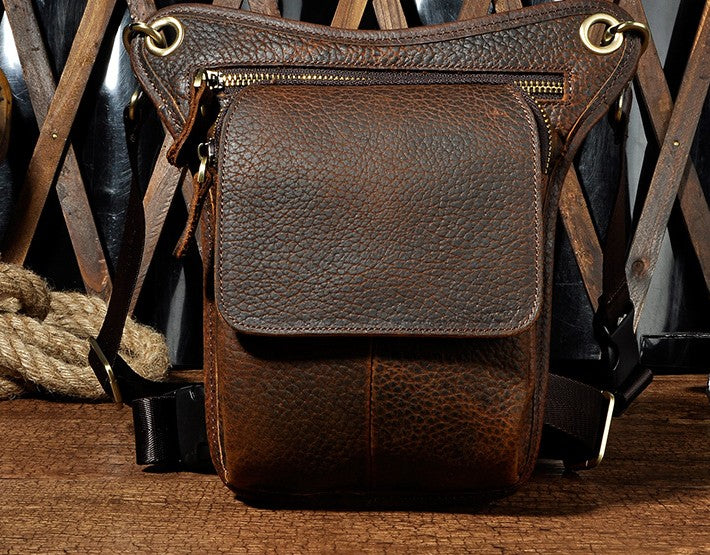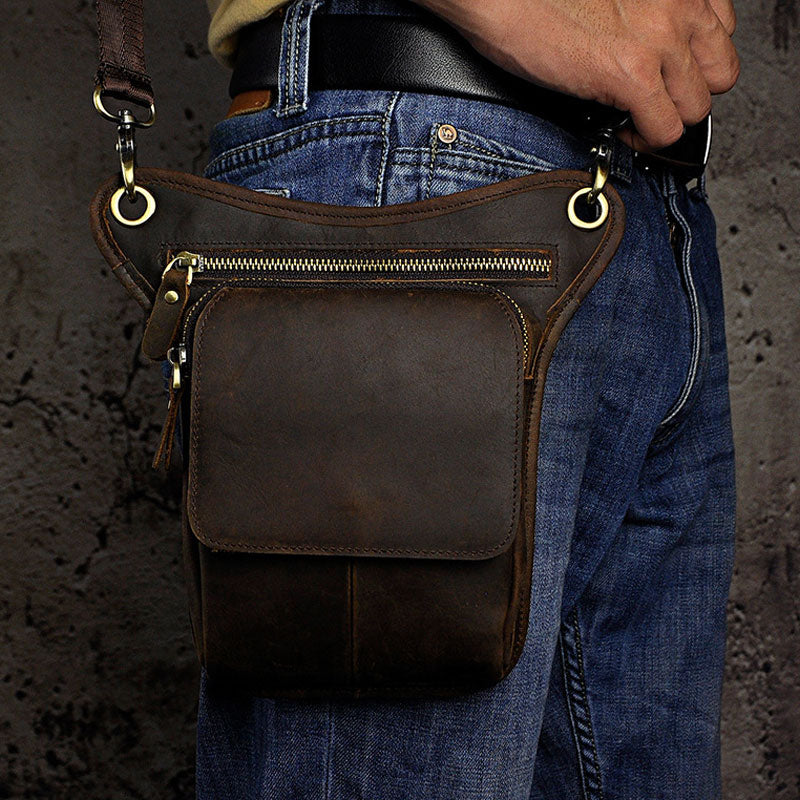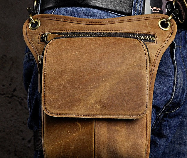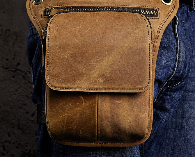 Design: Biker Mens Leather Drop Leg Bags Waist Bag Belt Pouch Pack Sides Bags for Men