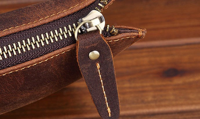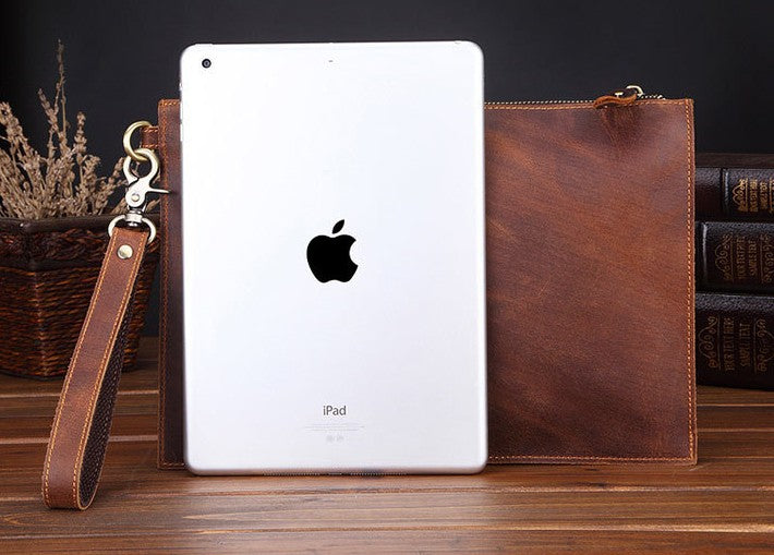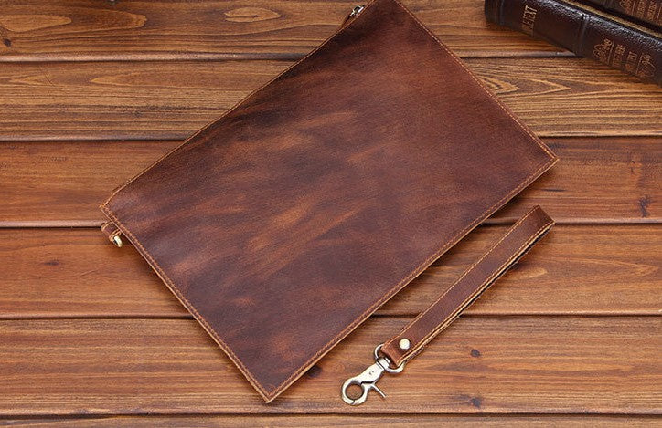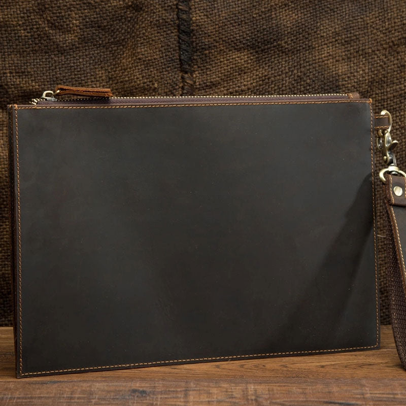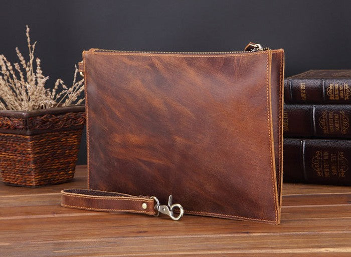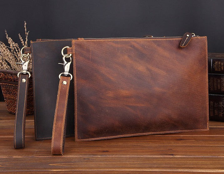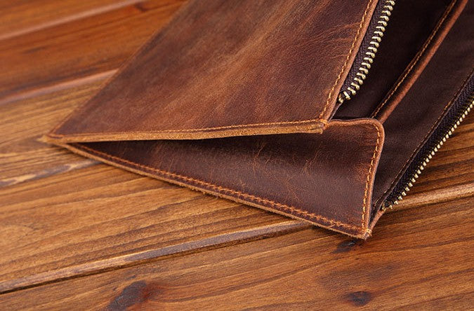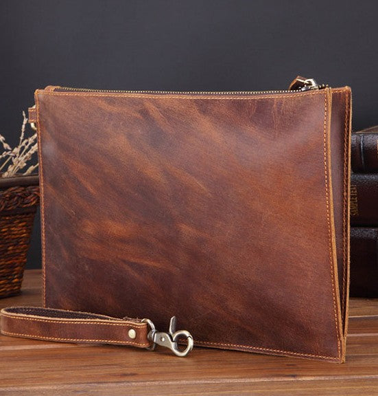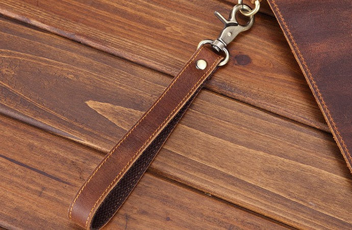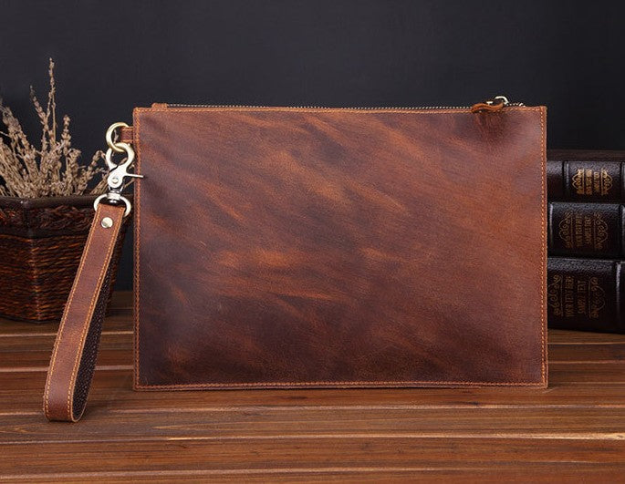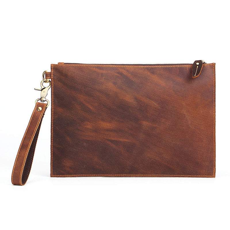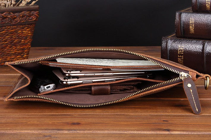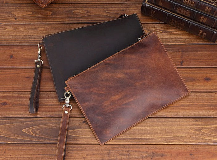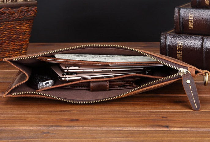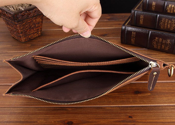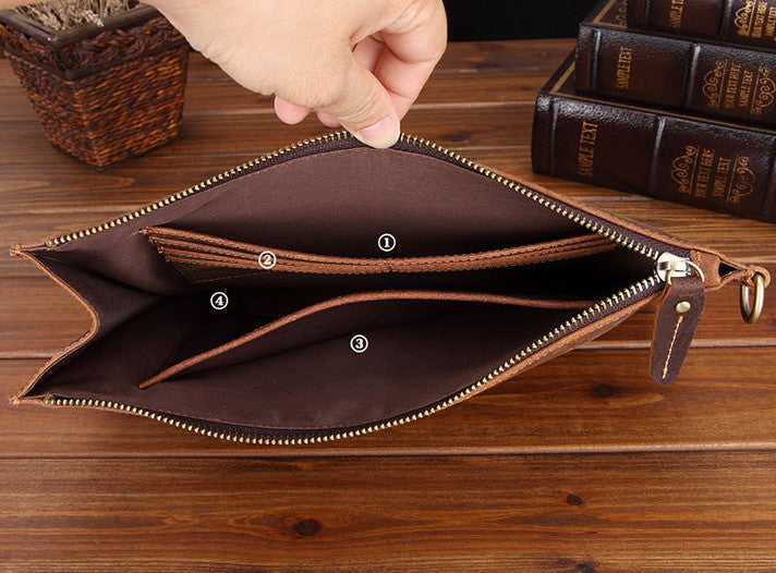 Design: Mens Leather Slim Zip Clutch Brown Wristlet Purse Leather Clutch Bags For Men