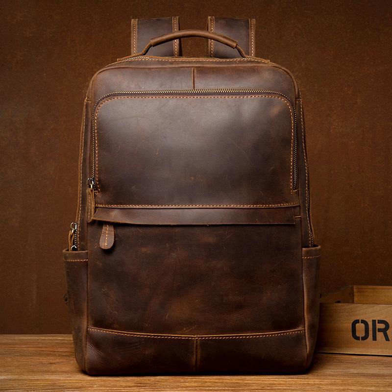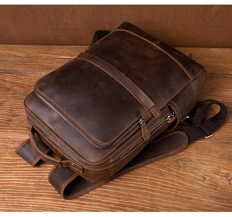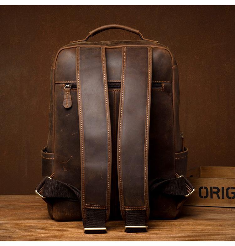 Design: Black Casual Mens Leather 15-inch Computer Backpacks Brown Travel Backpacks School Backpacks for men