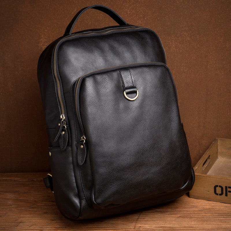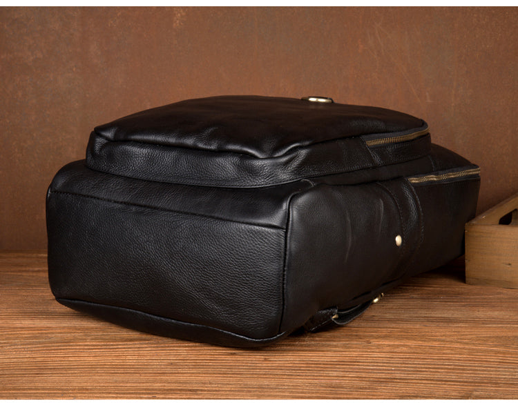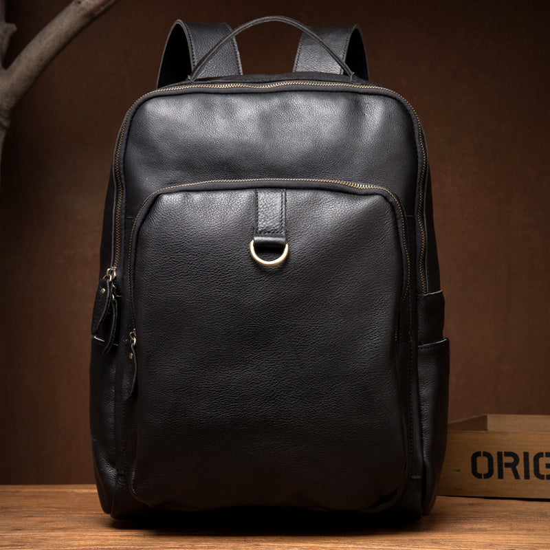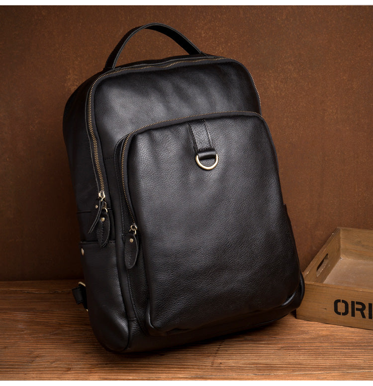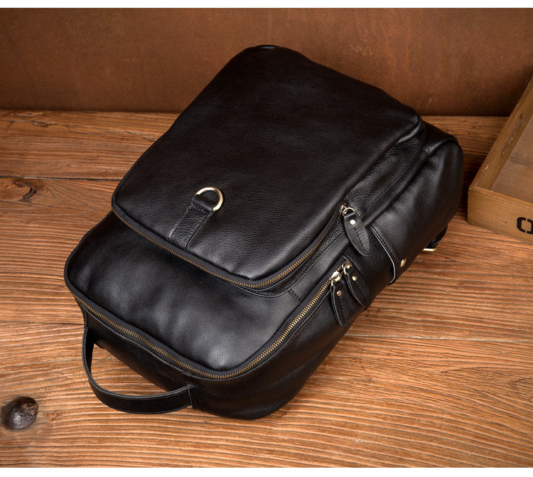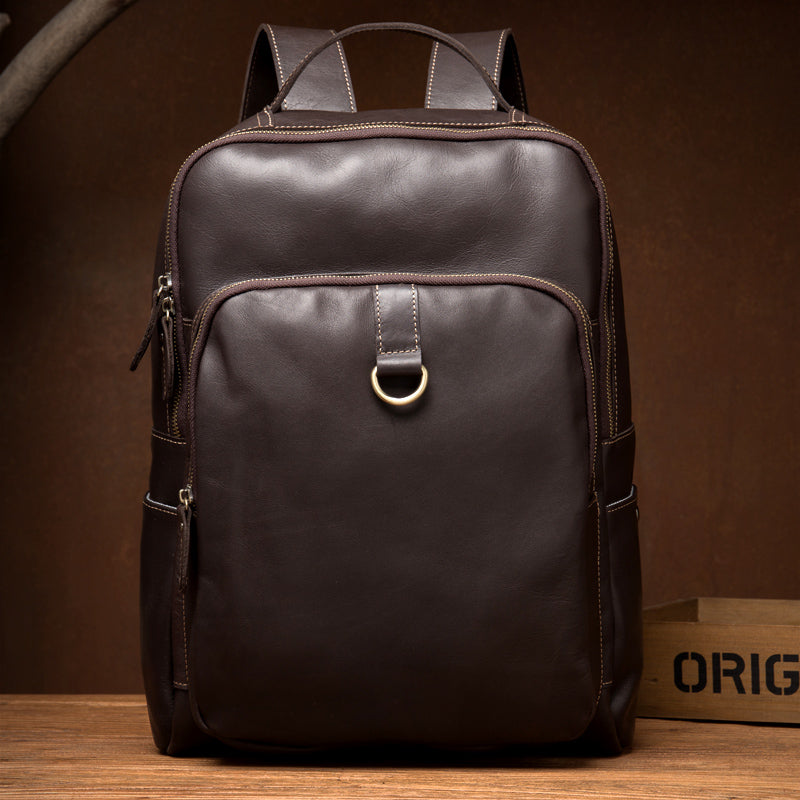Design: Black Casual Mens Leather 15-inch Computer Backpack Dark Brown Travel Backpacks School Backpacks for men