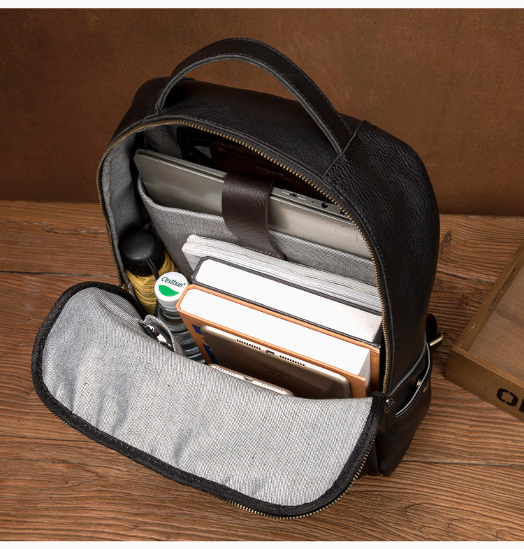 Style: Black Casual Mens Leather 15-inch Computer Backpack Dark Brown Travel Backpacks School Backpacks for men