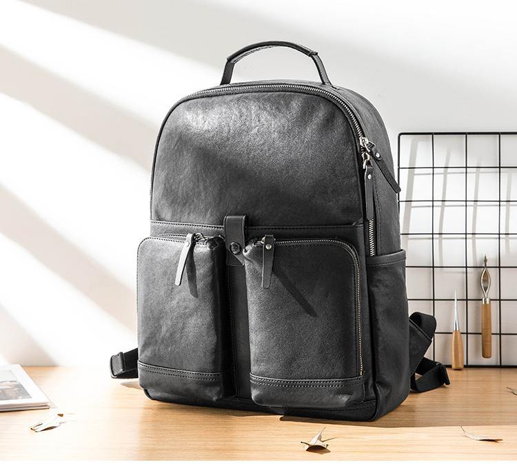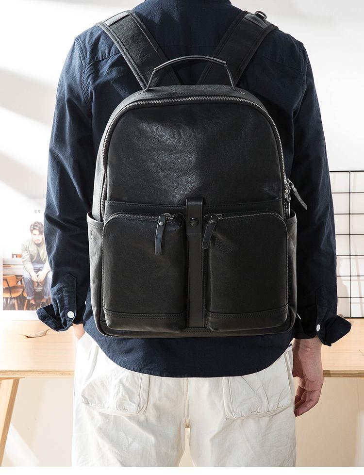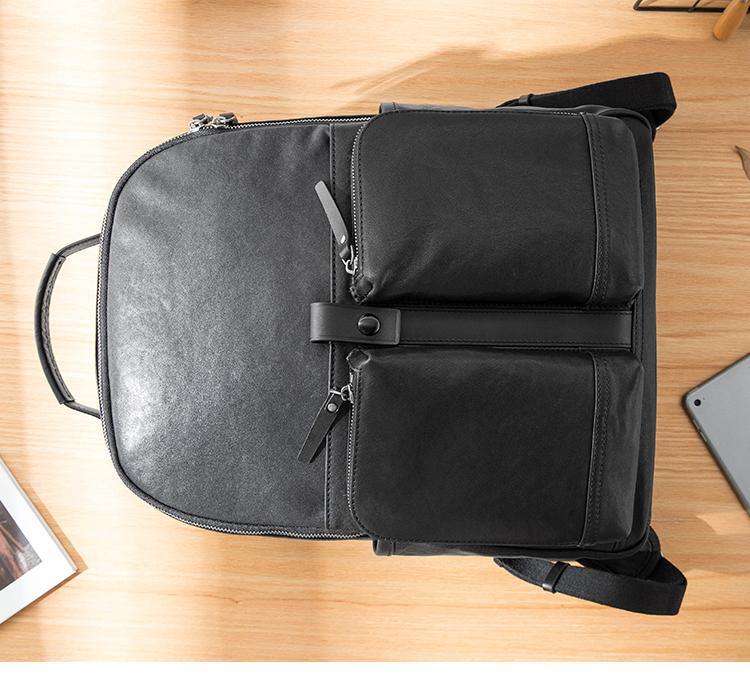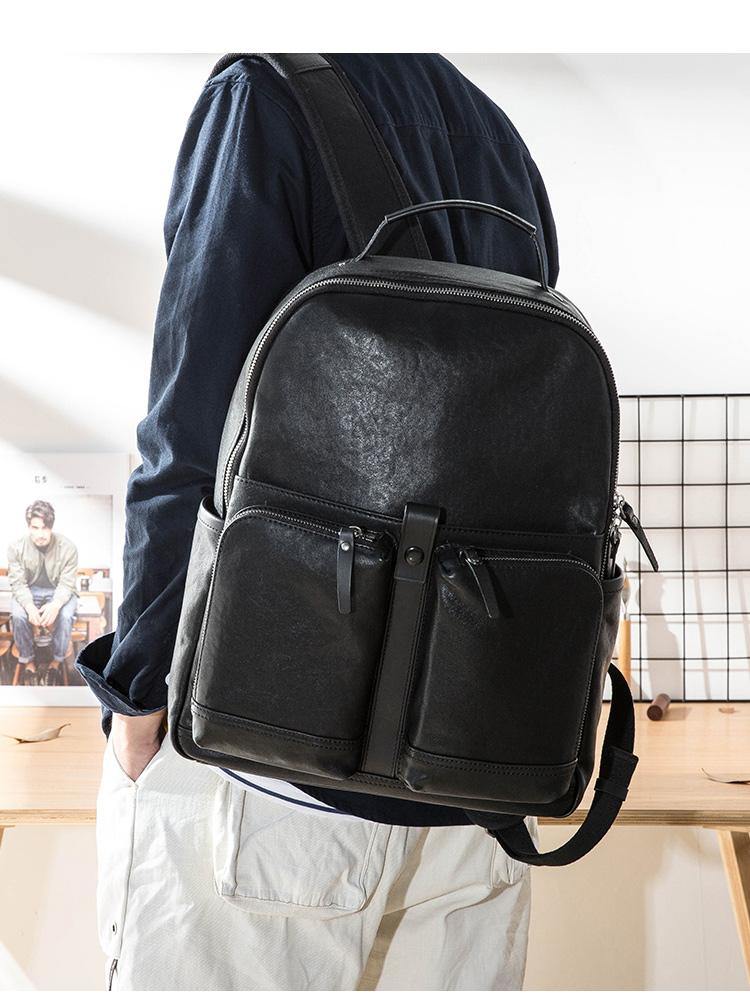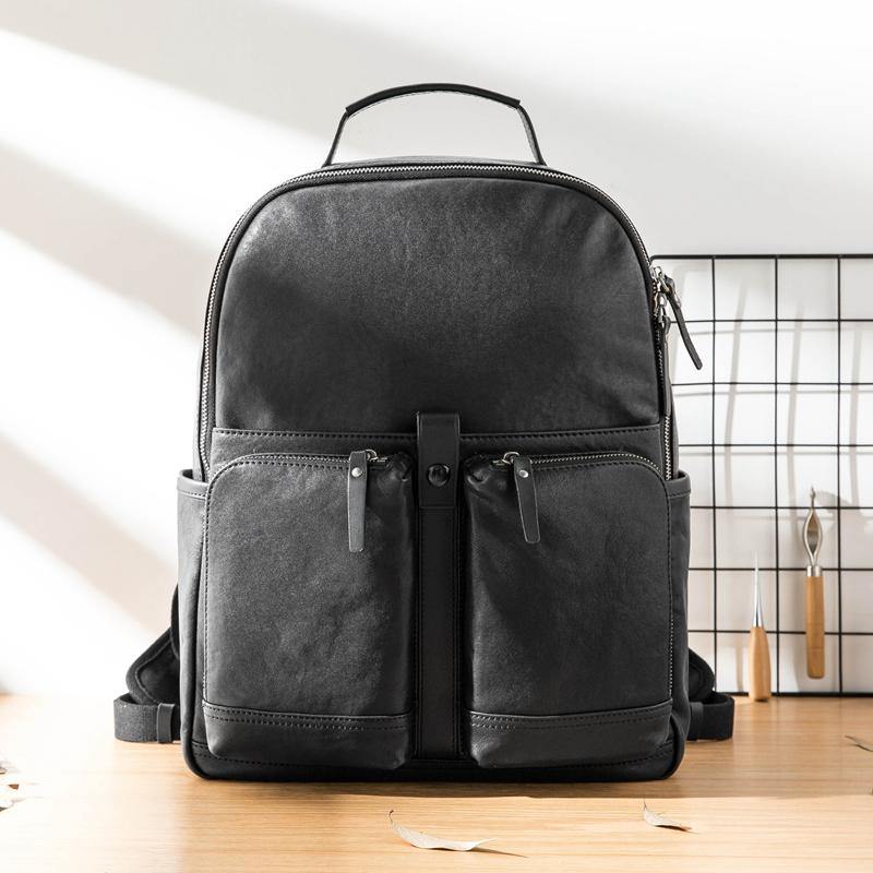 Design: Black Casual Mens Leather 15-inch Computer Backpacks Travel Backpacks College Backpack for men