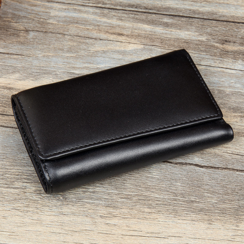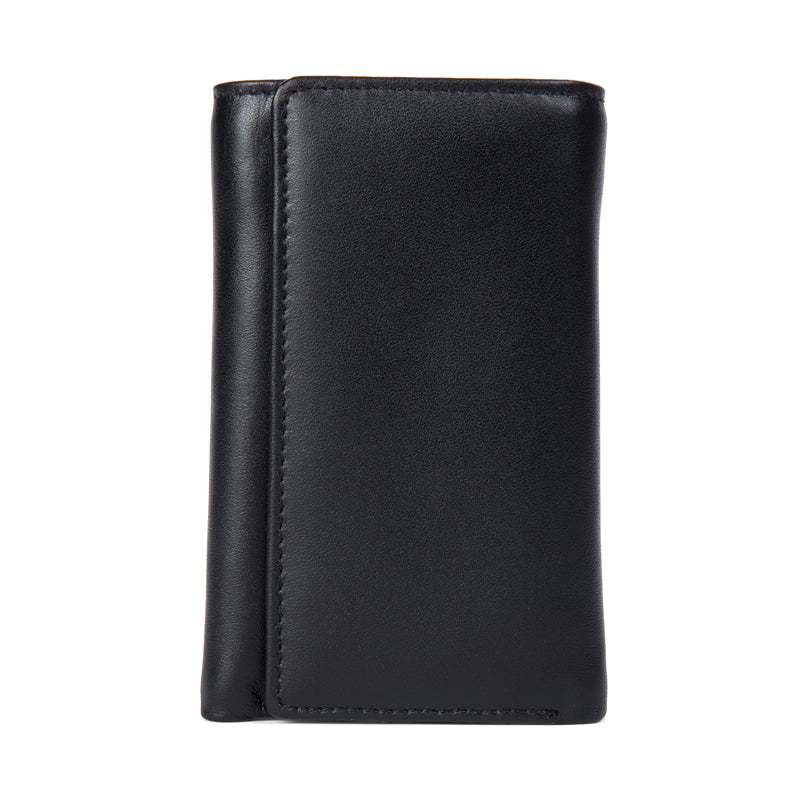 Design: Black Cool Leather Mens Card Holder Trifold Key Wallet Multifunction billfold Wallet For Men