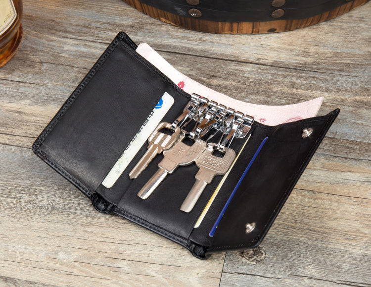 Style: Black Cool Leather Mens Card Holder Trifold Key Wallet Multifunction billfold Wallet For Men