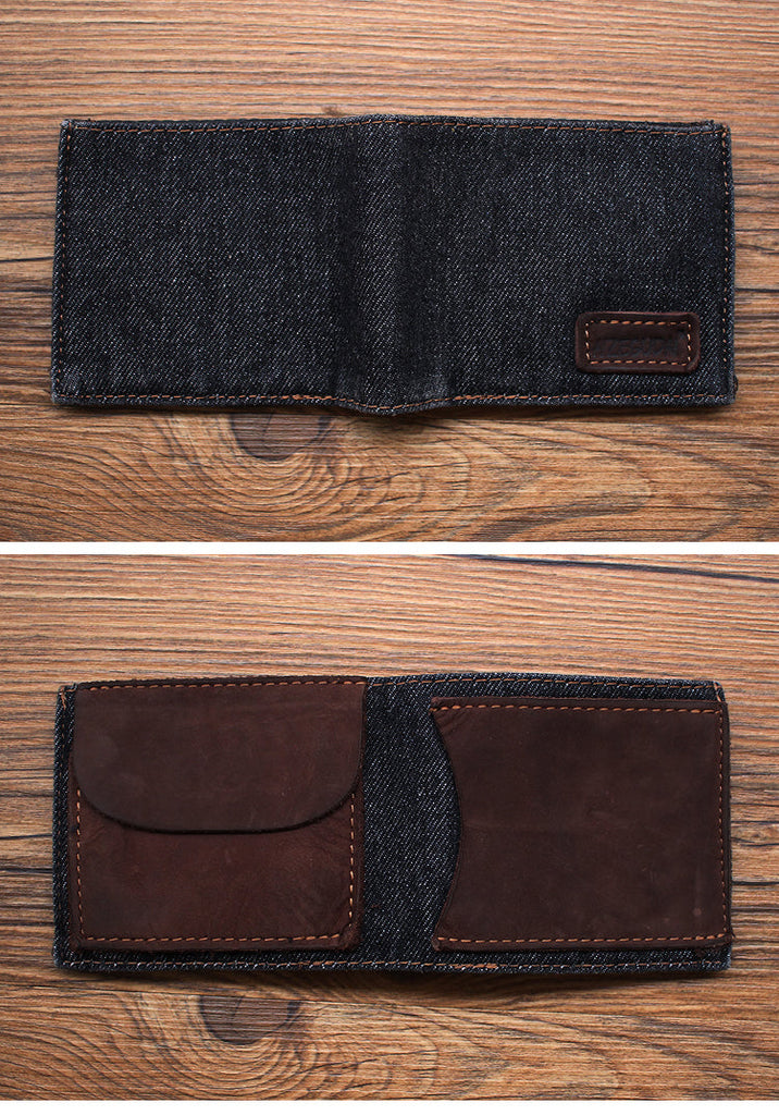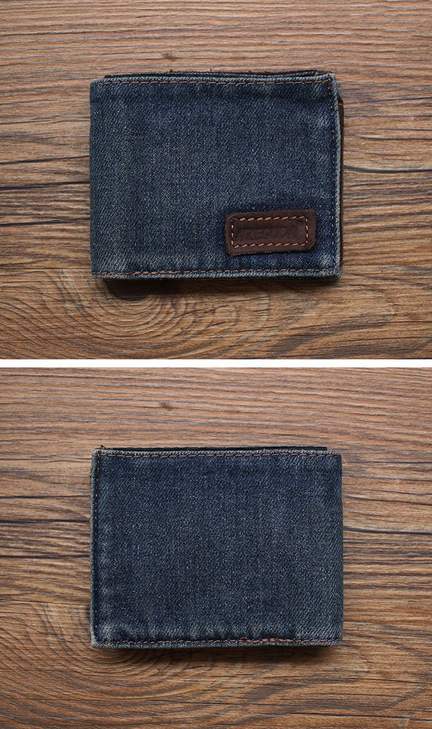 Style: Cool Denim Mens Leather billfold Wallet Bifold Card Wallets For Men