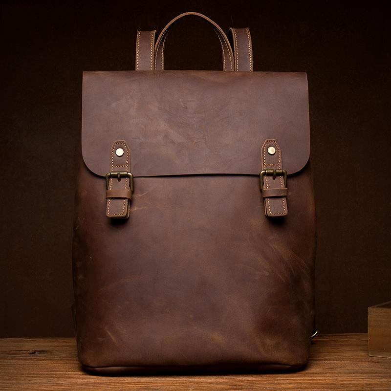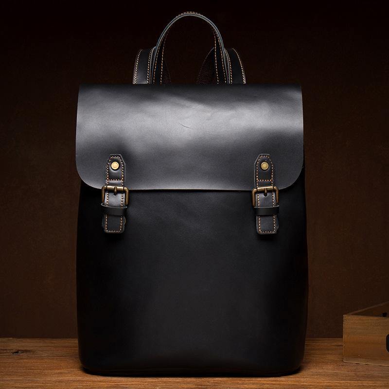 Design: Black Fashion Mens Leather 15-inch Computer Backpack Brown Travel Backpacks School Backpacks for men