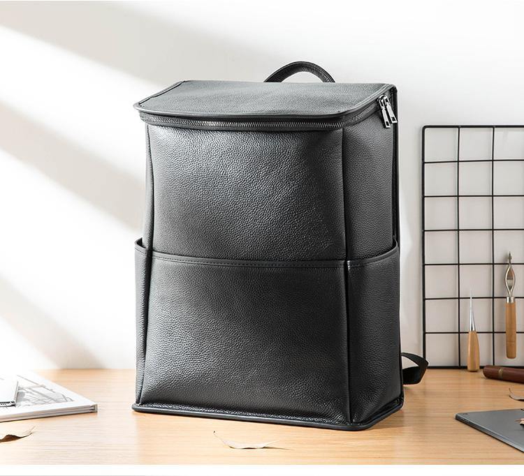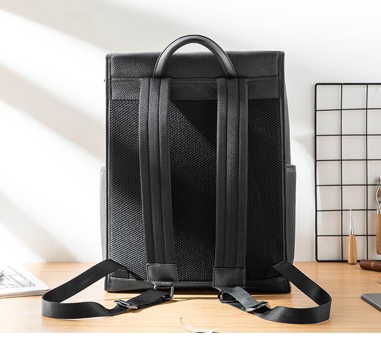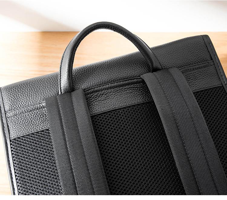 Design: Black Fashion Mens Leather 15-inch Multifunction Backpacks Business Travel Backpacks Laptop Backpack for men