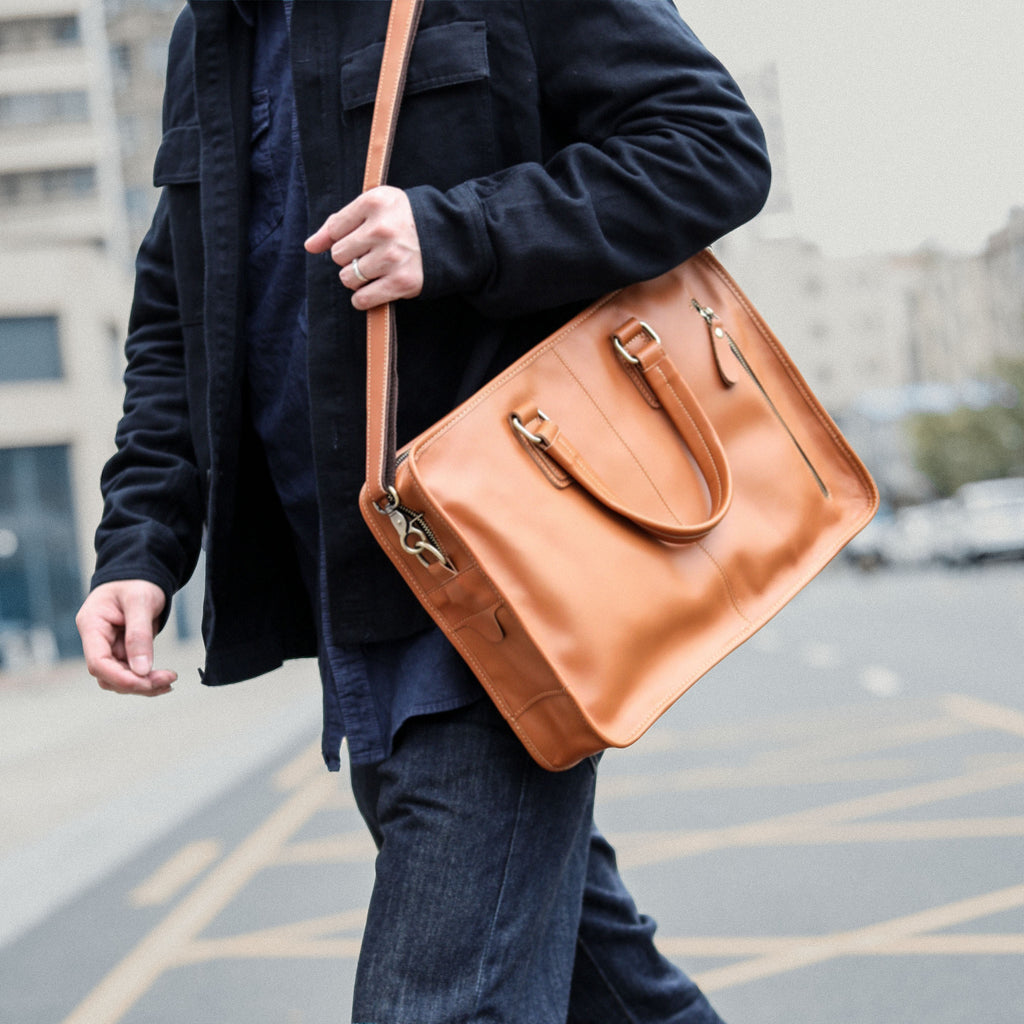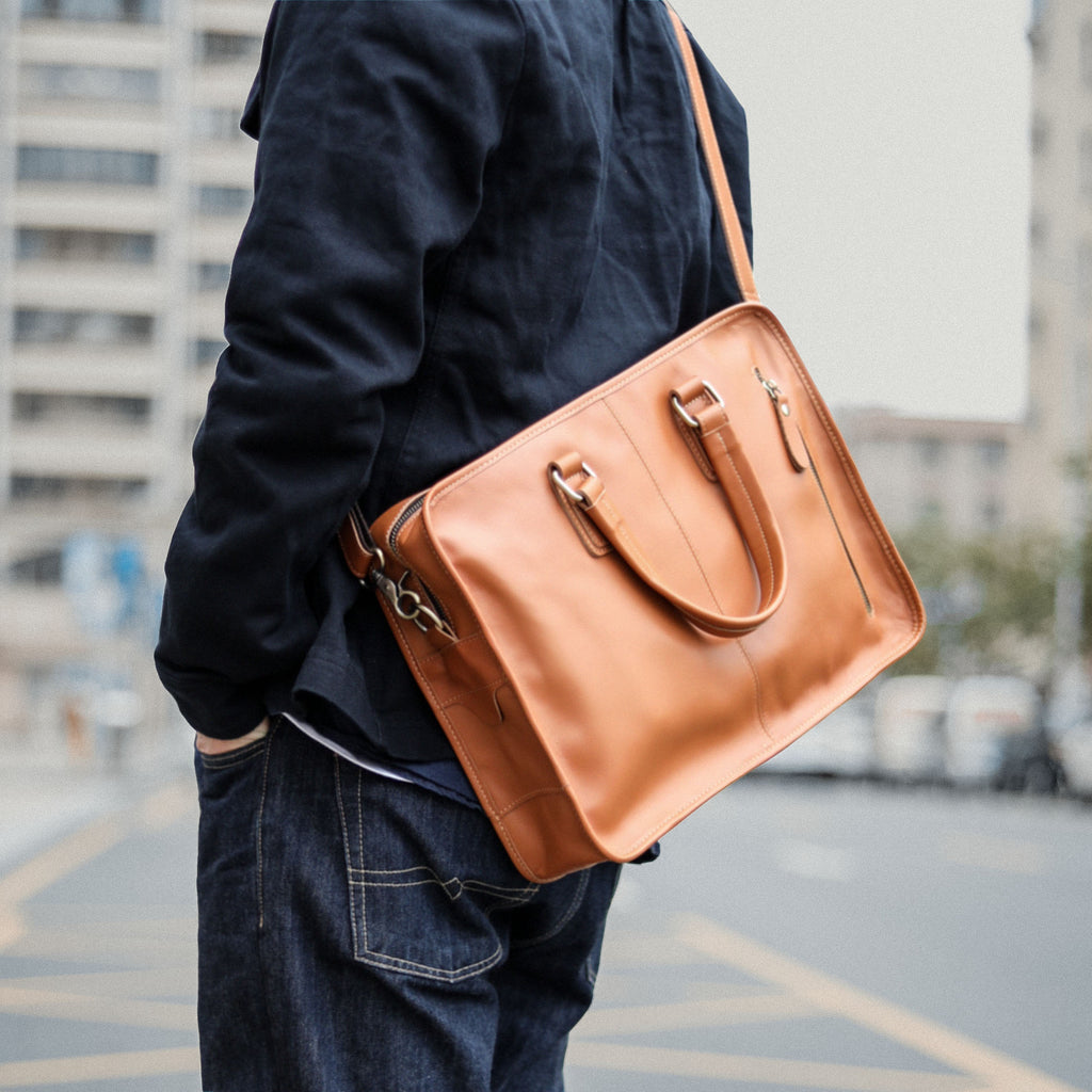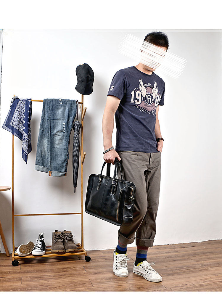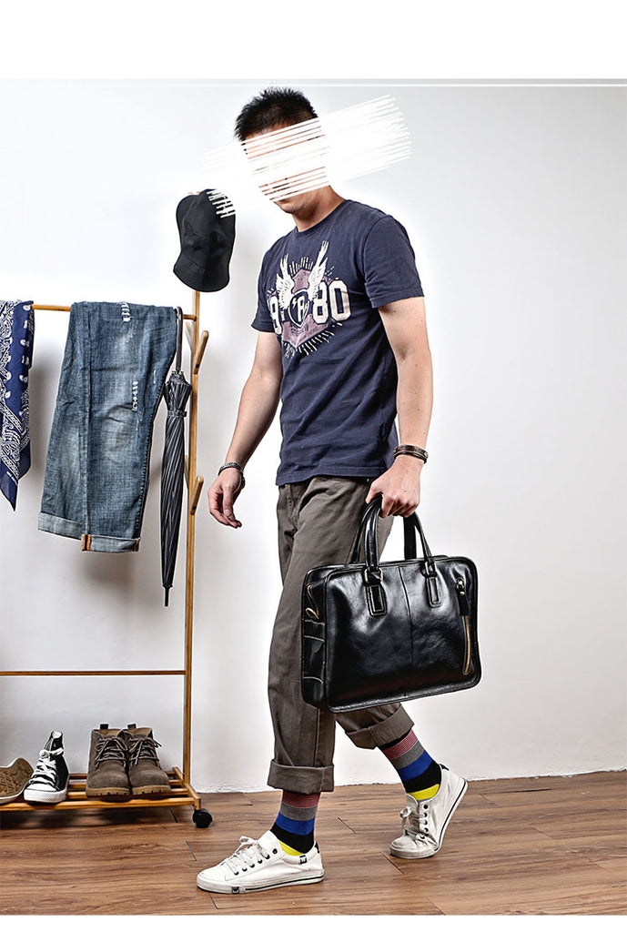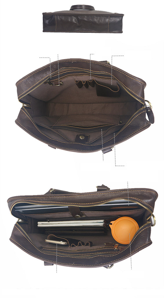 Design: Vintage Black Mens Leather Briefcase Work Handbag Brown 14'' Computer Briefcase For MenOverview: