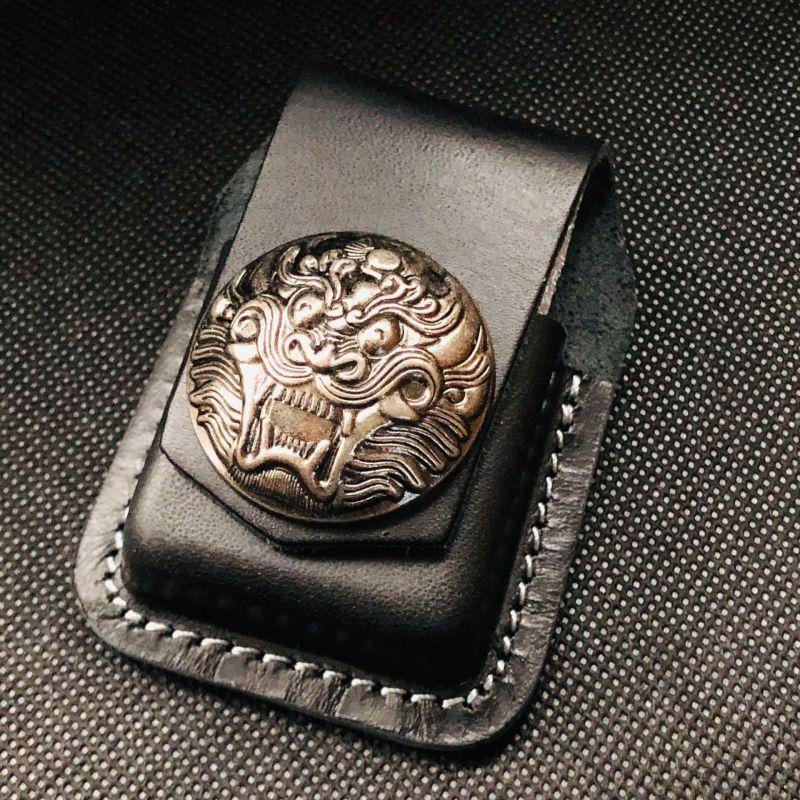 Black Handmade Leather Mens Monster Zippo Lighter Holders Lighter Case For Men