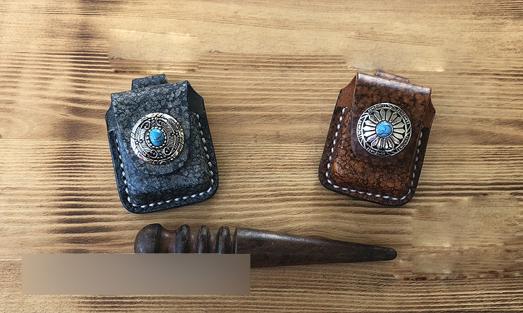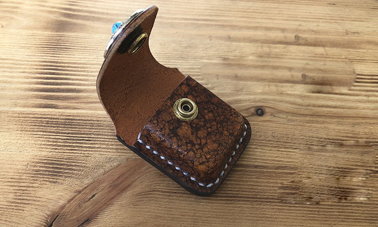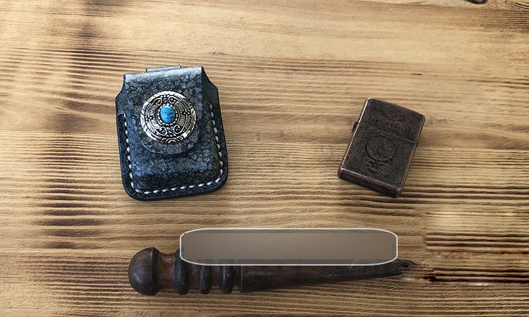 Style: Handmade Mens Blue Leather Classic Zippo Lighter Case Belt Zippo Lighter Holder with Belt Loop