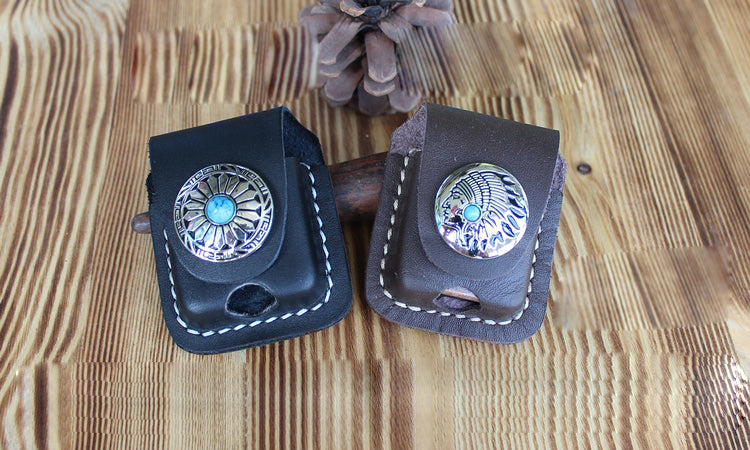 Handmade Mens Black Leather Classic Zippo Lighter Cases Tan Zippo Lighter Holder with Belt Clip