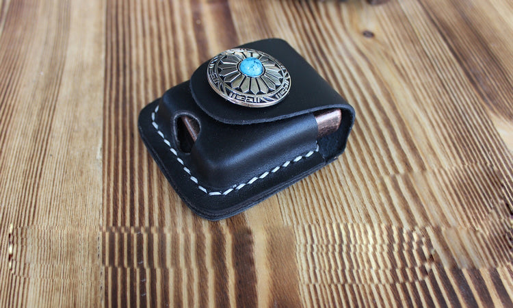 Design:?Handmade Mens Black Leather Zippo Lighter Case Belt Zippo Lighter Holder with Belt Clip