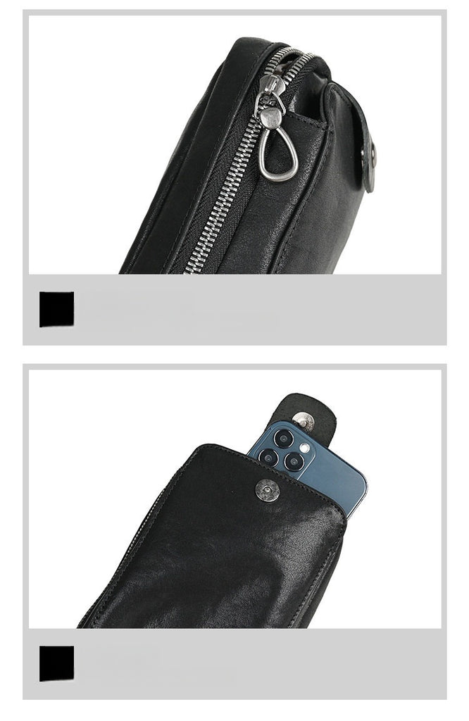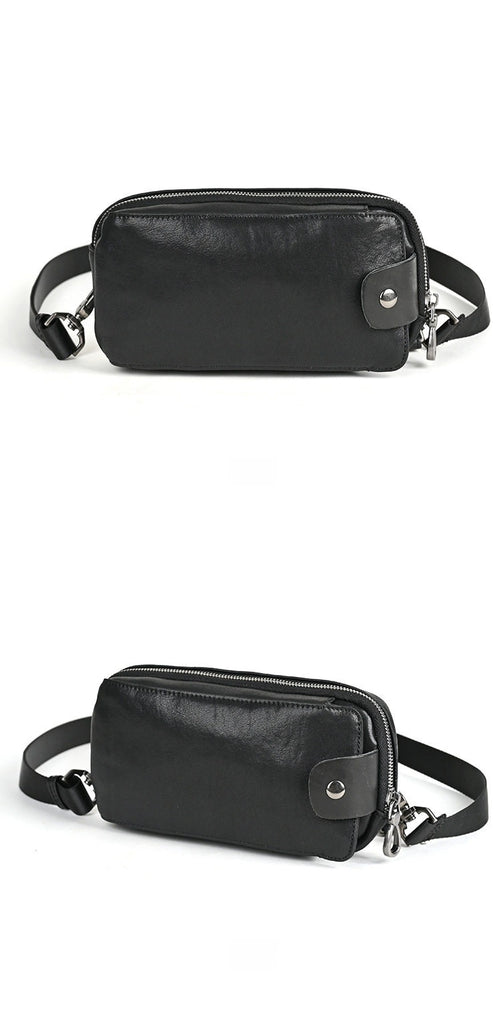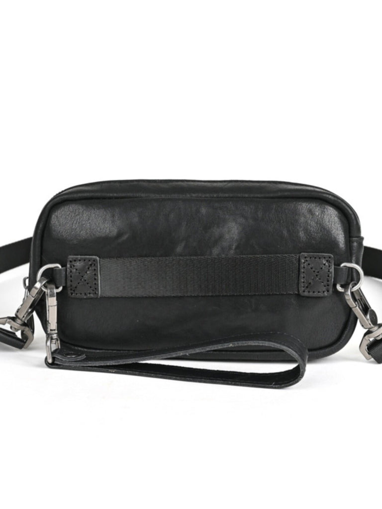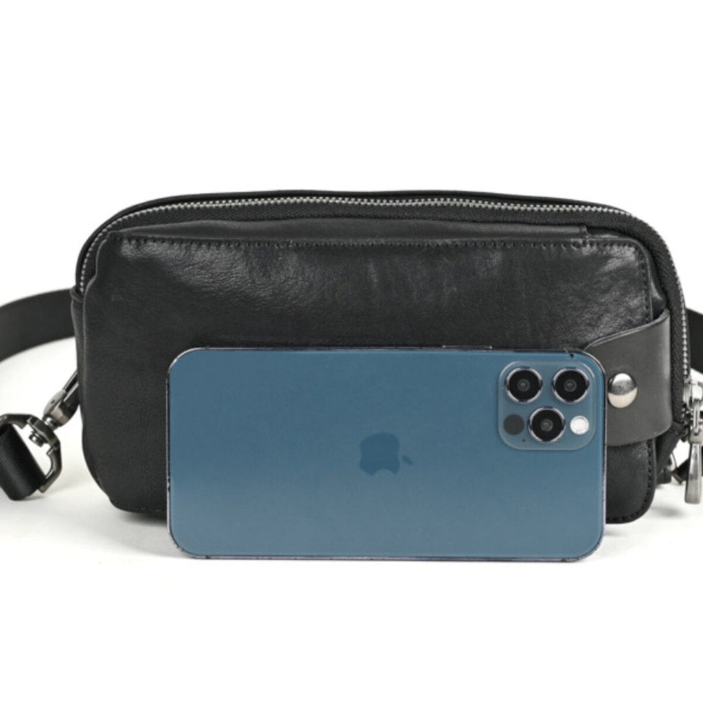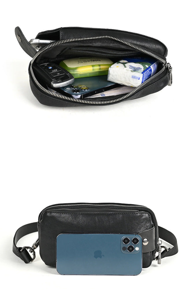 Black Leather Chest Bag | Versatile Small Leather Chest Bag for EDC