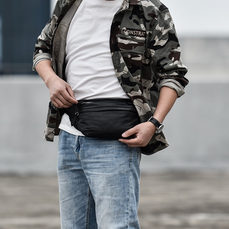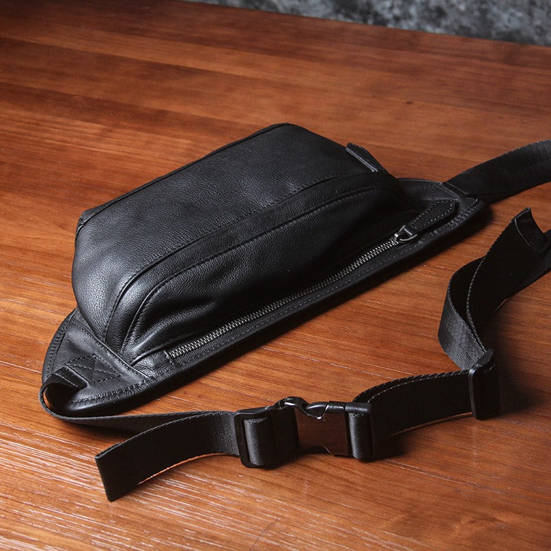 Design: Black Leather Fanny Pack Men's Black Chest Bag Hip Pack Waist Bag For Men