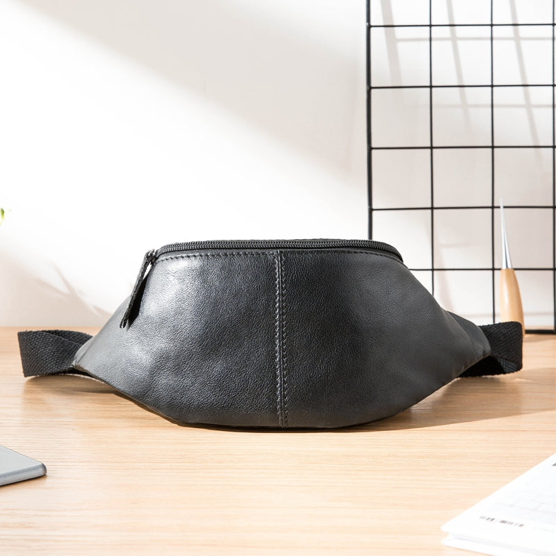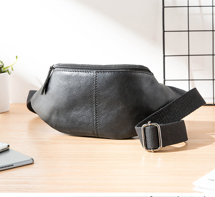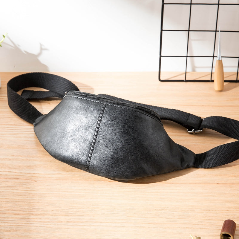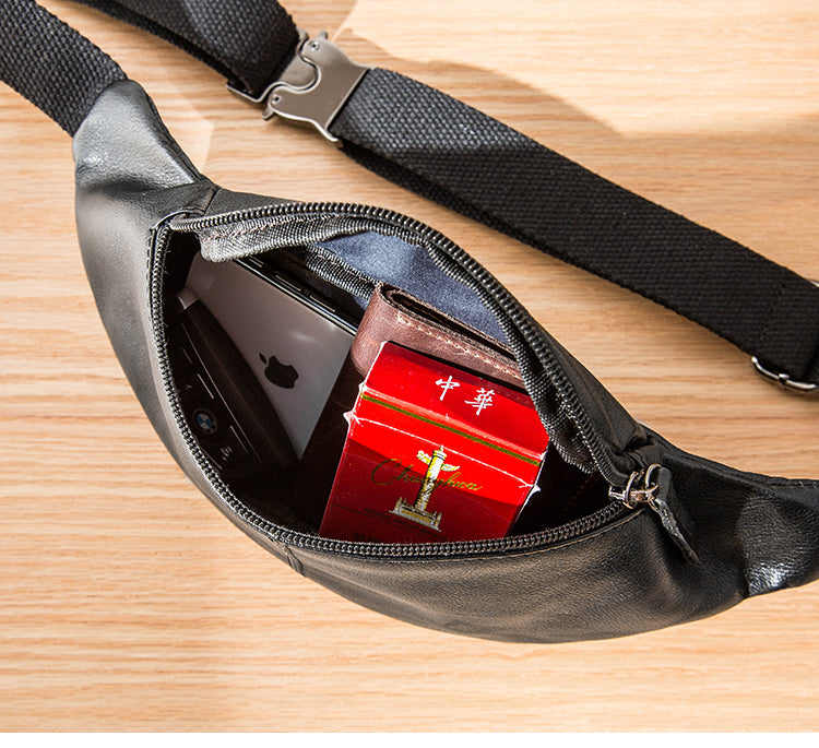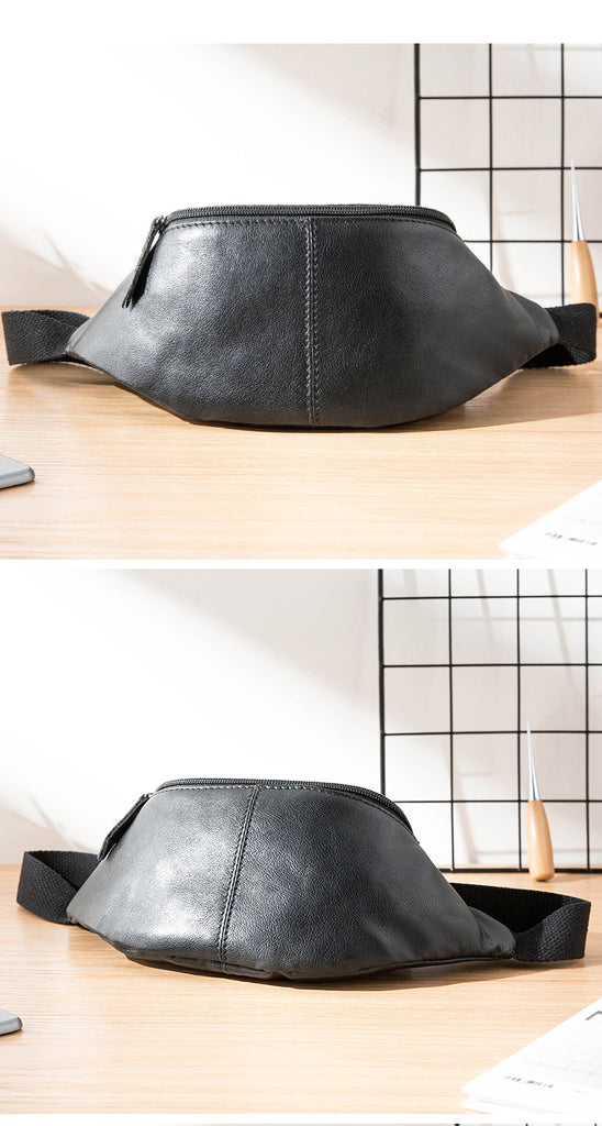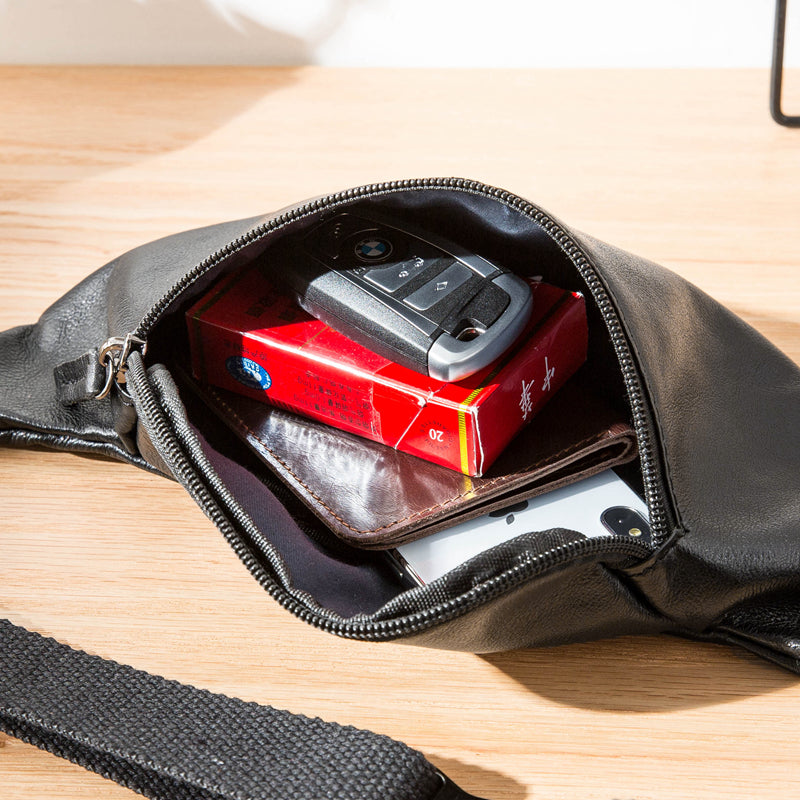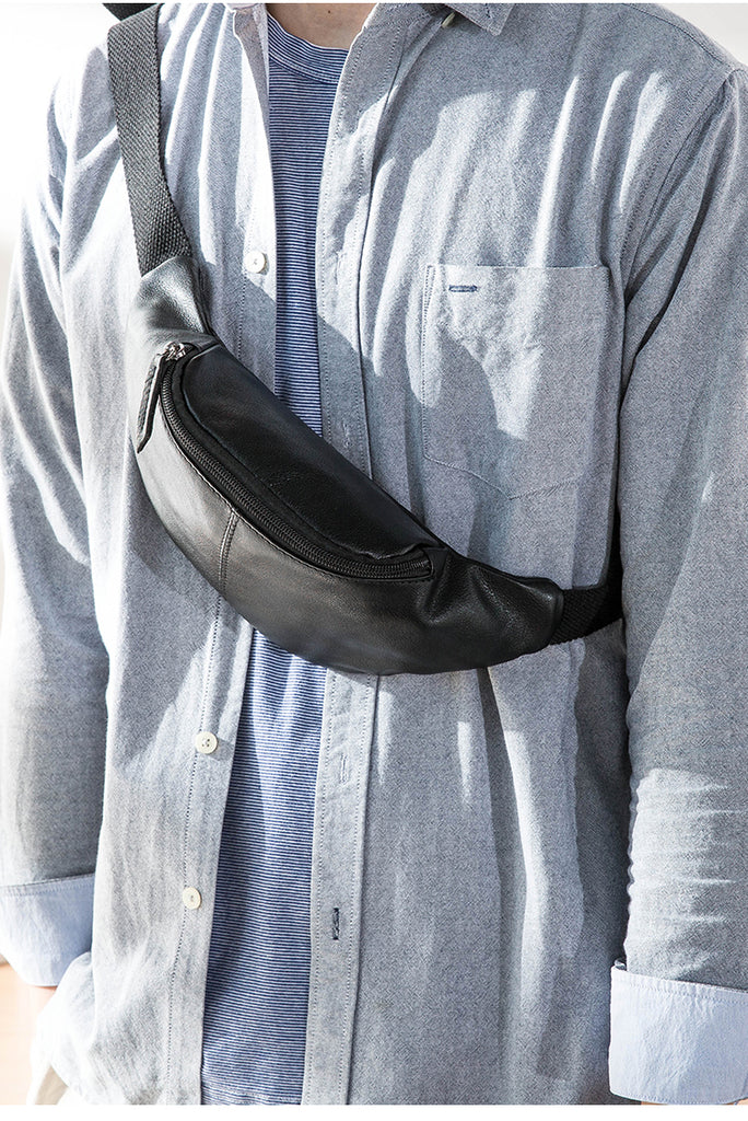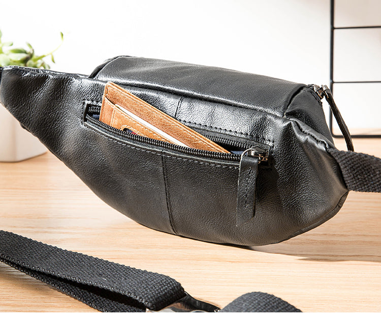 Style: Black Leather Fanny Packs Mens Waist Bag Hip Pack Belt Bag Chest Bag for Men
