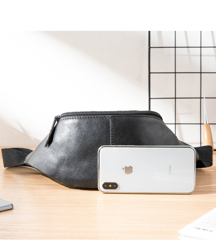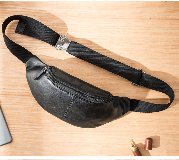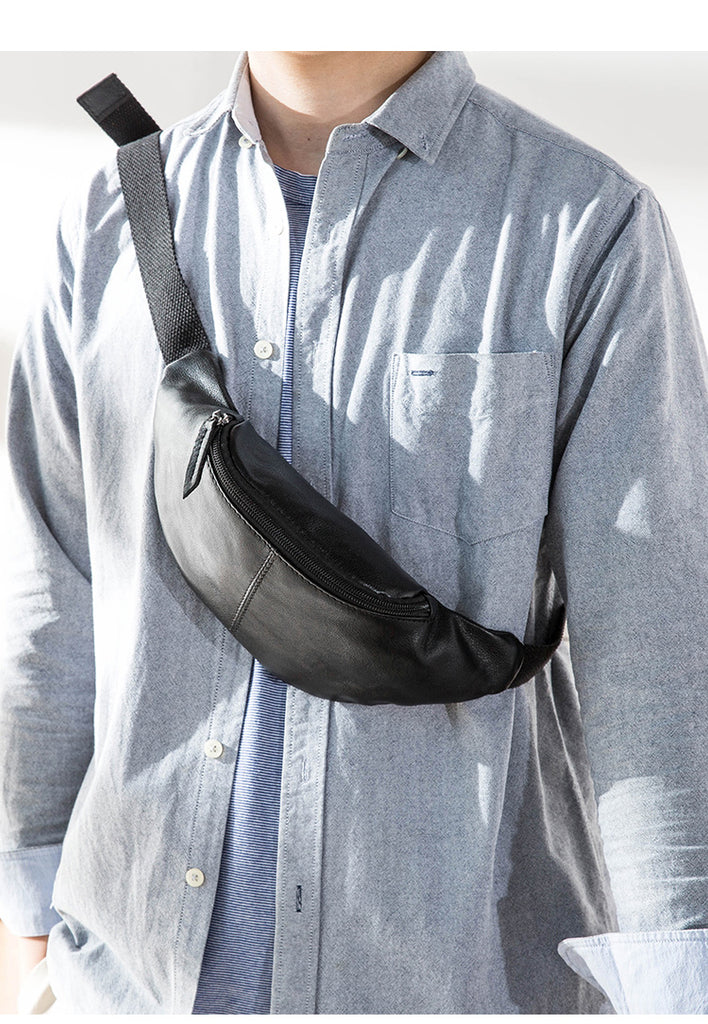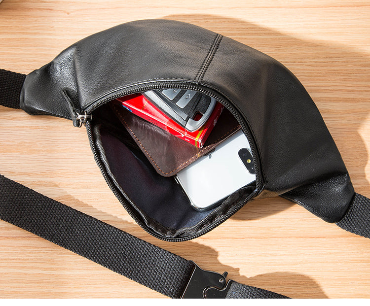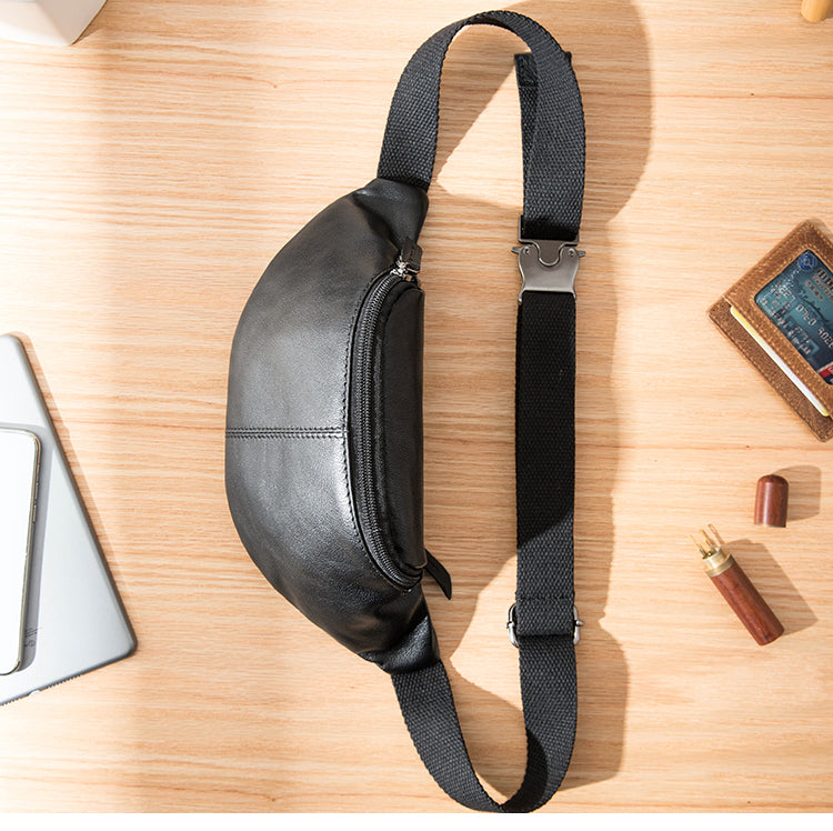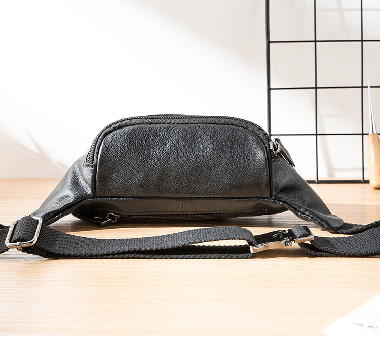 Design: Black Leather Fanny Packs Mens Waist Bag Hip Pack Belt Bag Chest Bag for Men