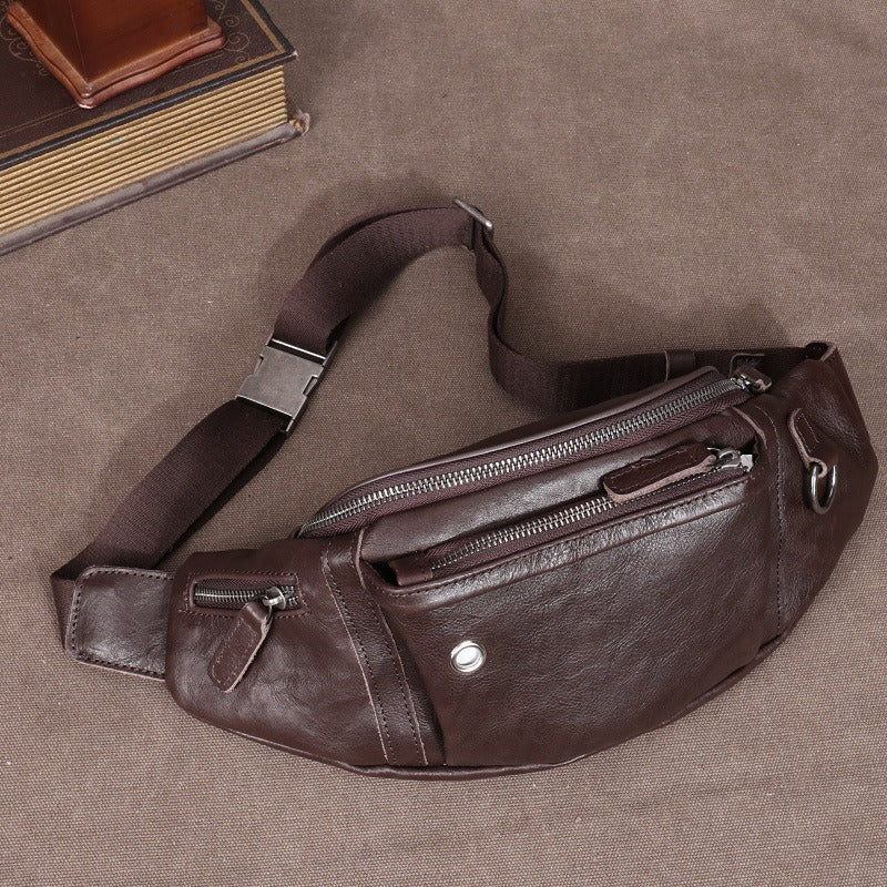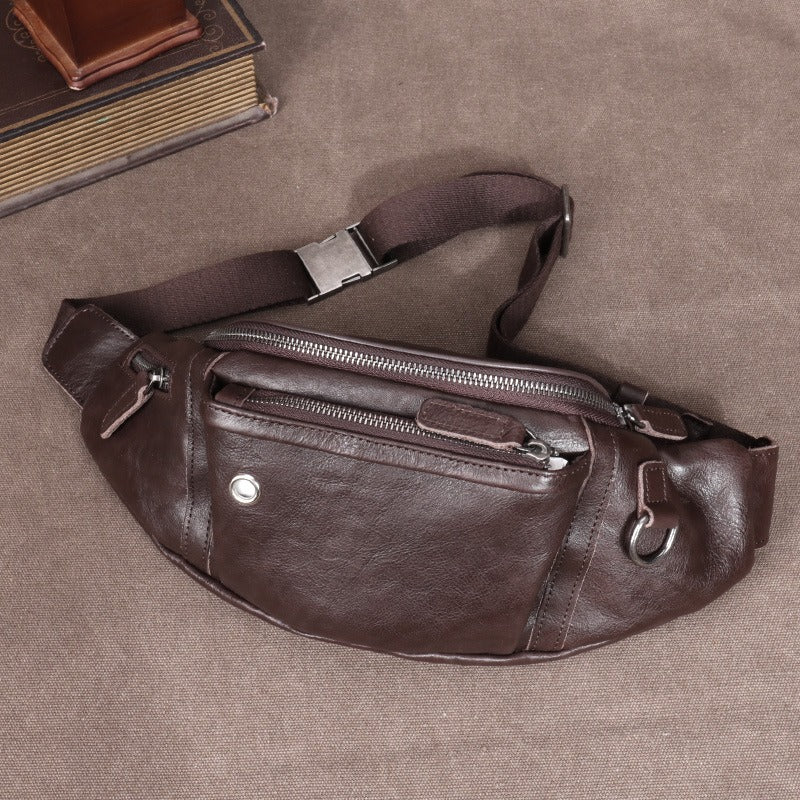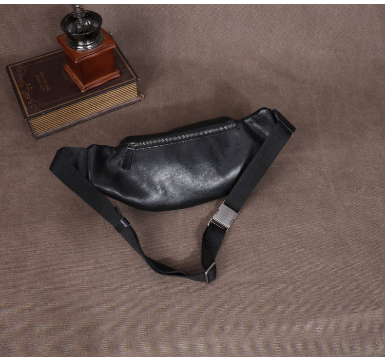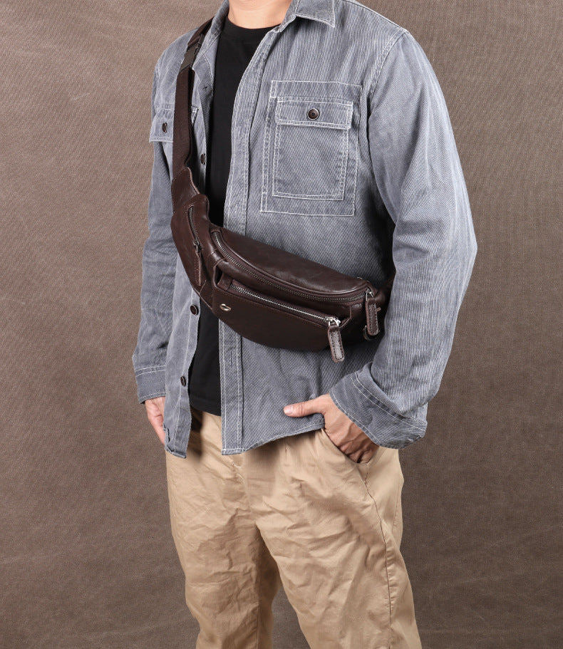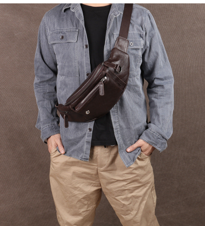 Design: Black Leather Men Fanny Pack Waist Bag Leather Hip Pack Bum Pack For Men
