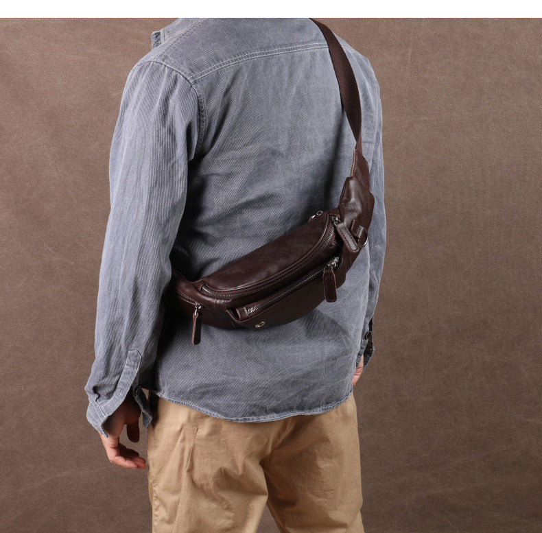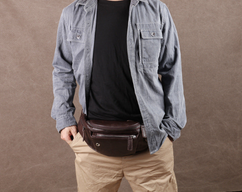 Style: Black Leather Men Fanny Pack Waist Bag Leather Hip Pack Bum Pack For Men