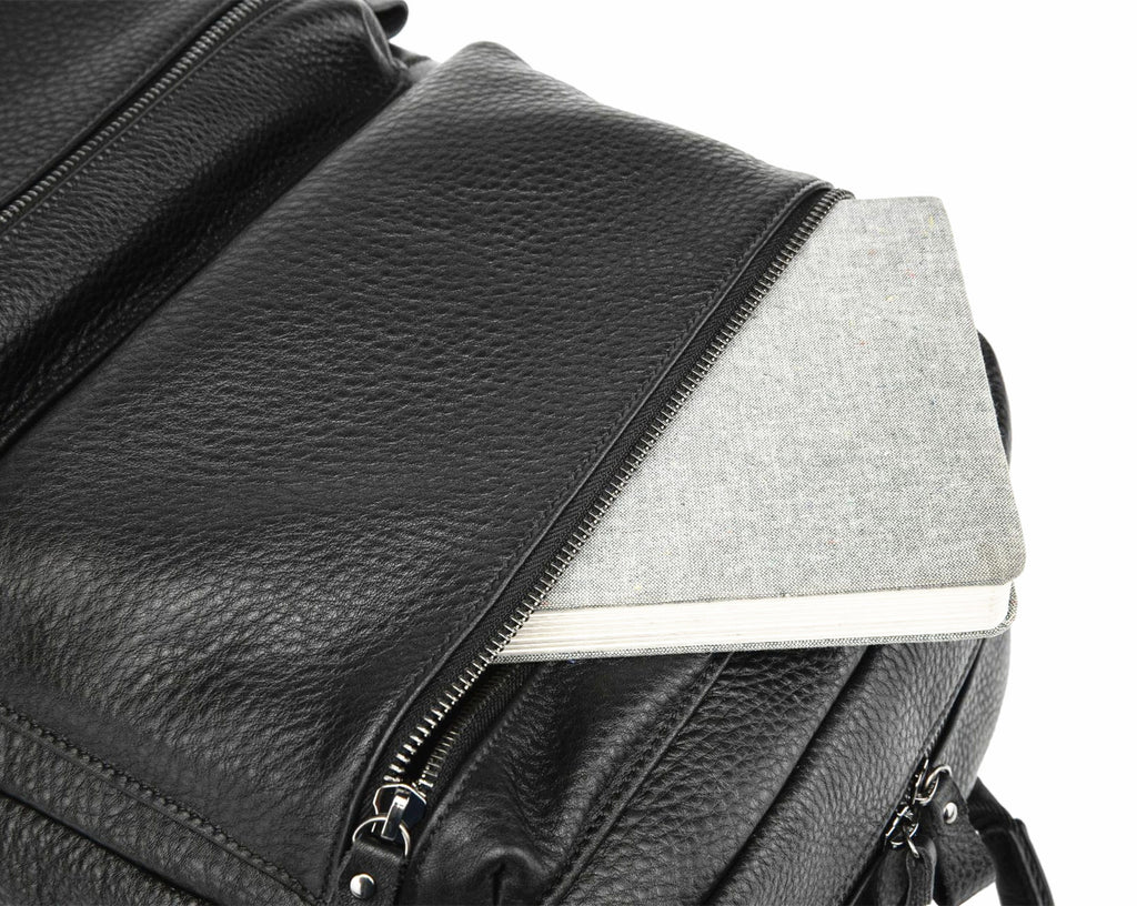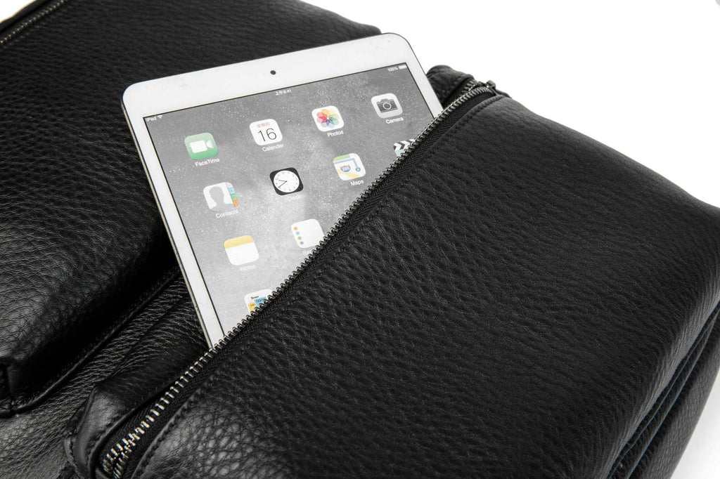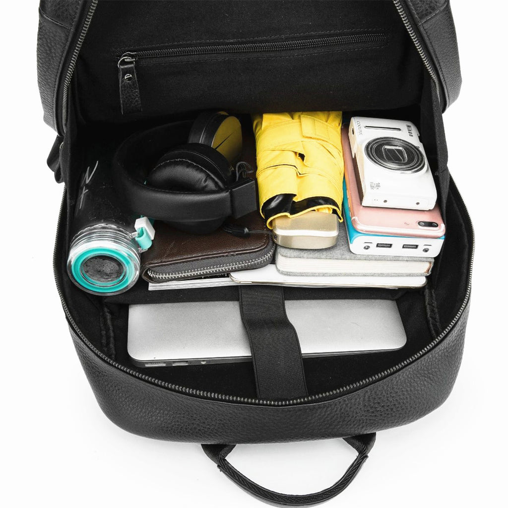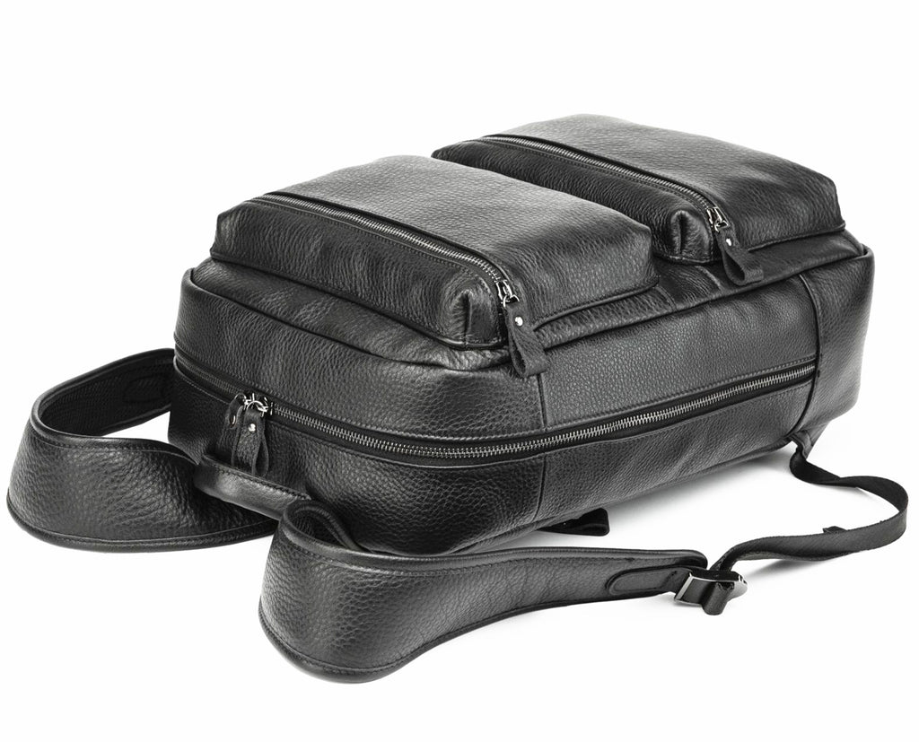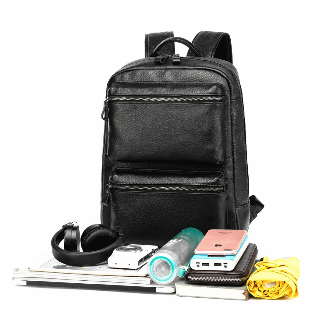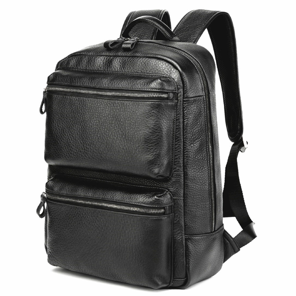 Design: Black Leather Men's 14 inches Computer Backpack Large Travel Backpack Black Large College Backpack For MenOverview:
