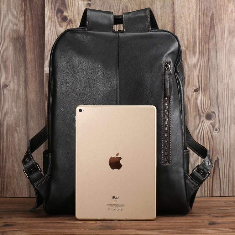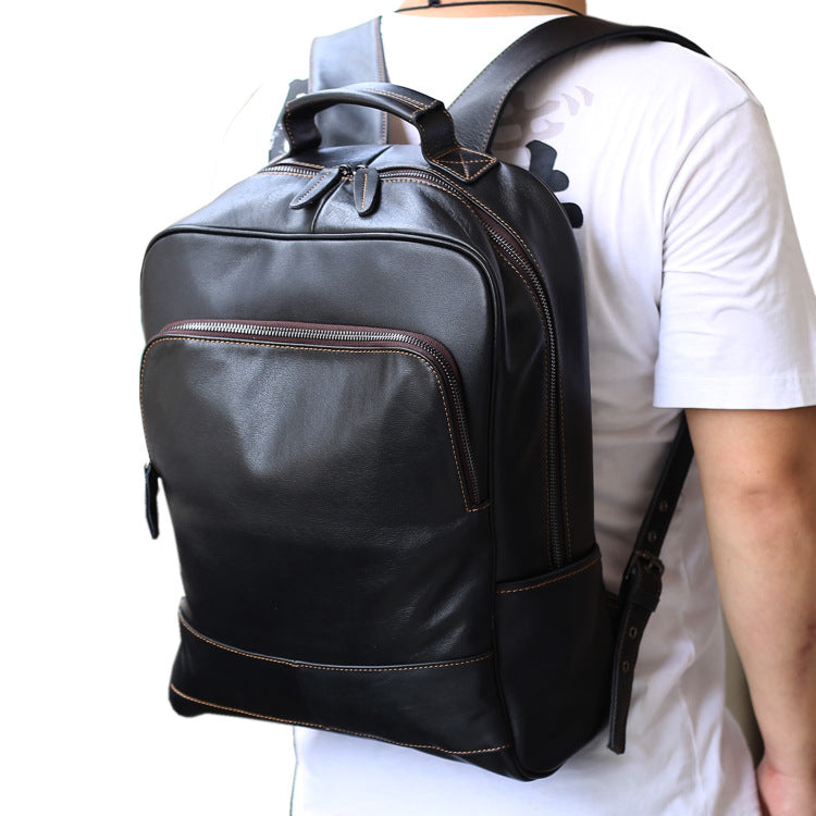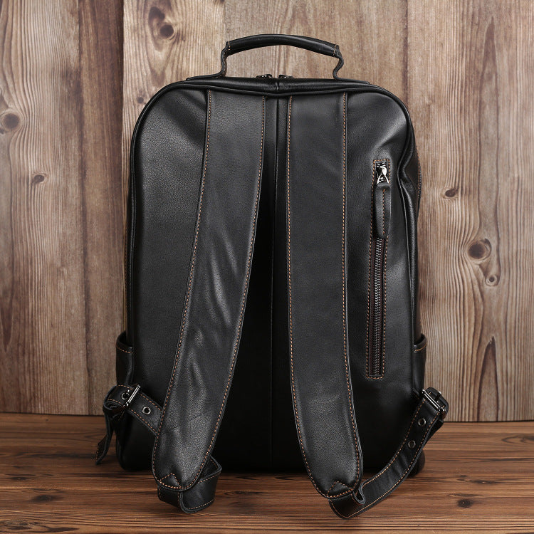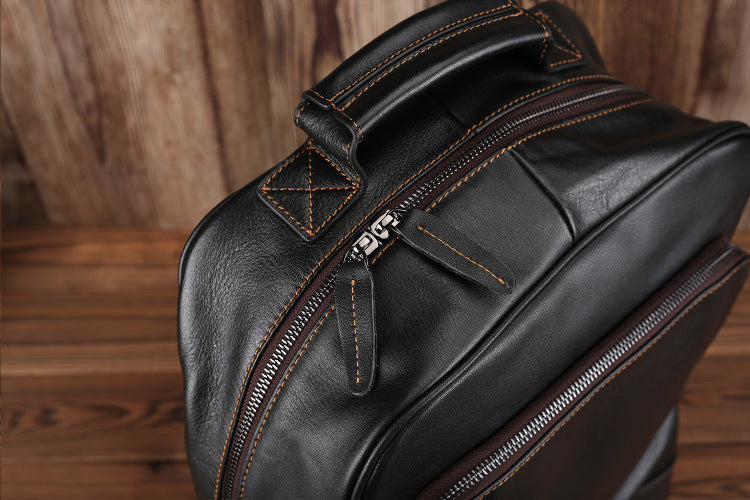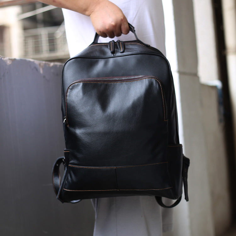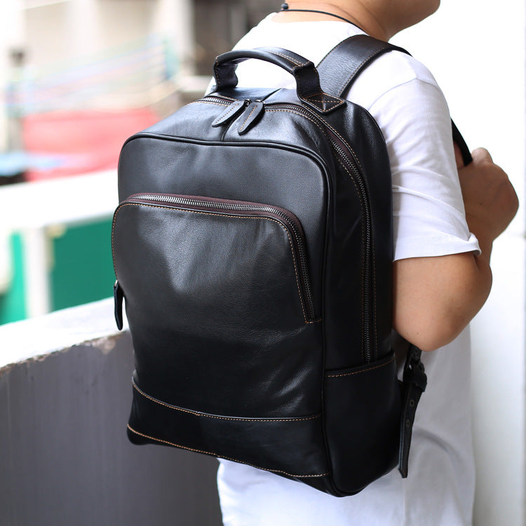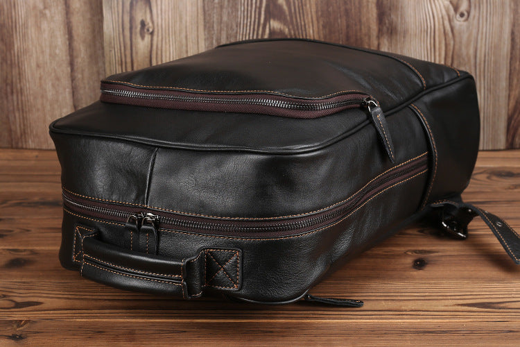 Design: Black Leather Men's 15 inches Computer Backpack Travel Backpack Large College Backpack For Men