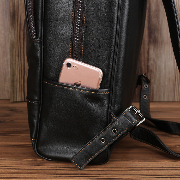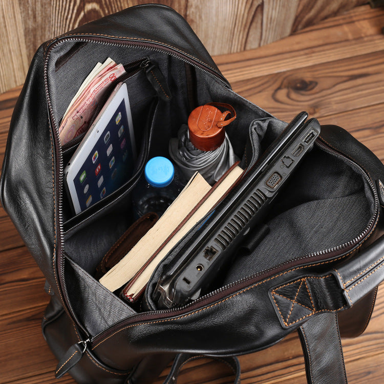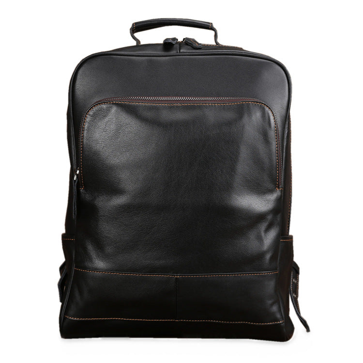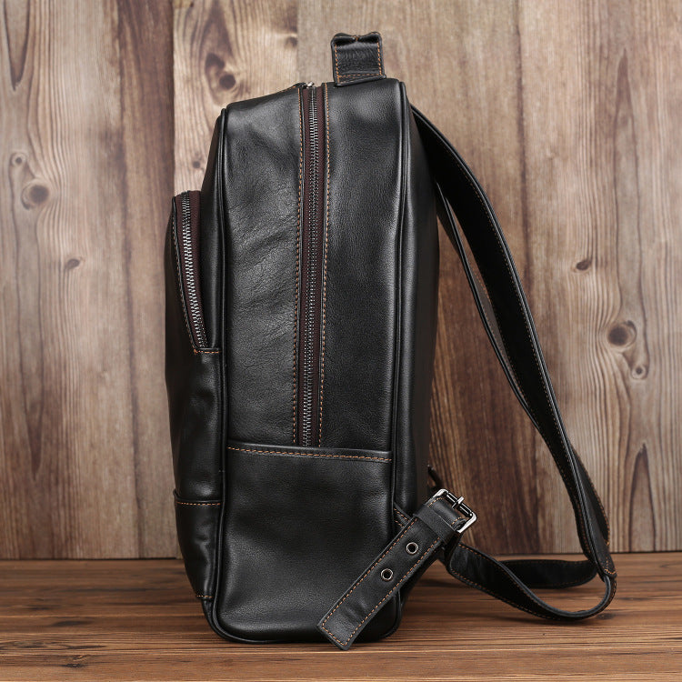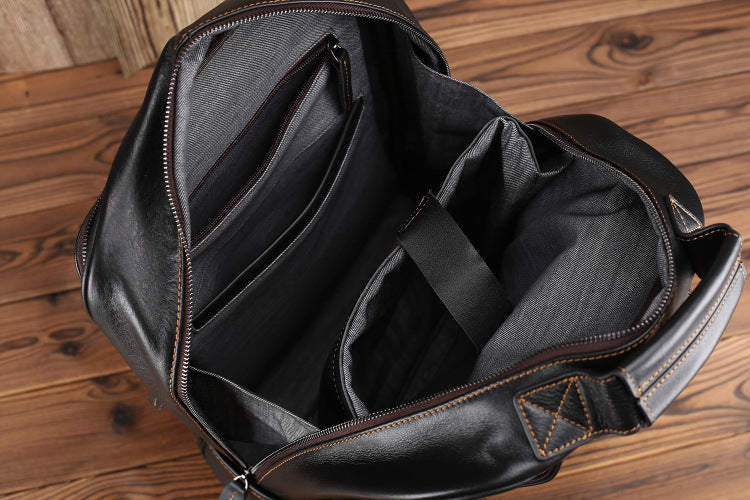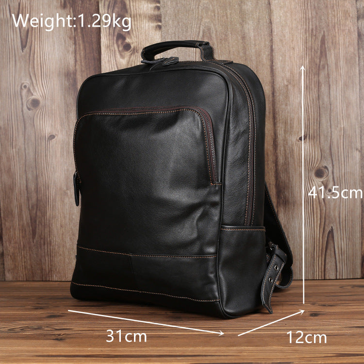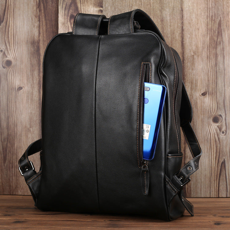 Design: Black Leather Men's 15 inches Computer Backpack Travel Backpack Large College Backpack For Men