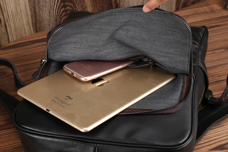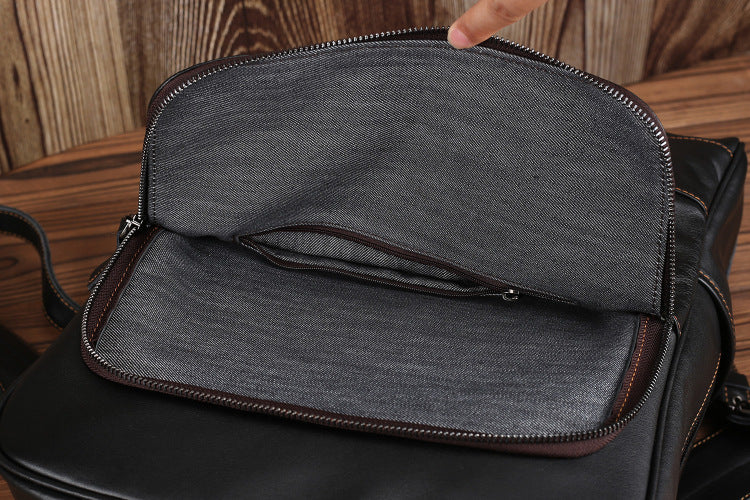 Design: Black Leather Men's 15 inches Computer Backpack Travel Backpack Large College Backpack For MenOverview: