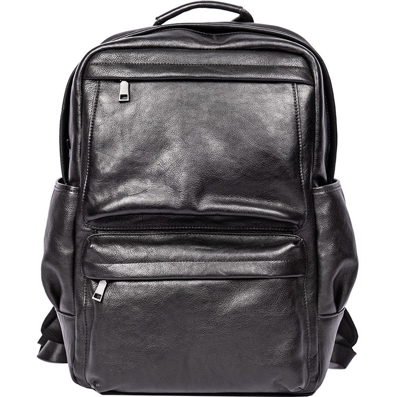 Style: Black Leather Mens Backpack 16'' Laptop Rucksack Black School Backpack For Men