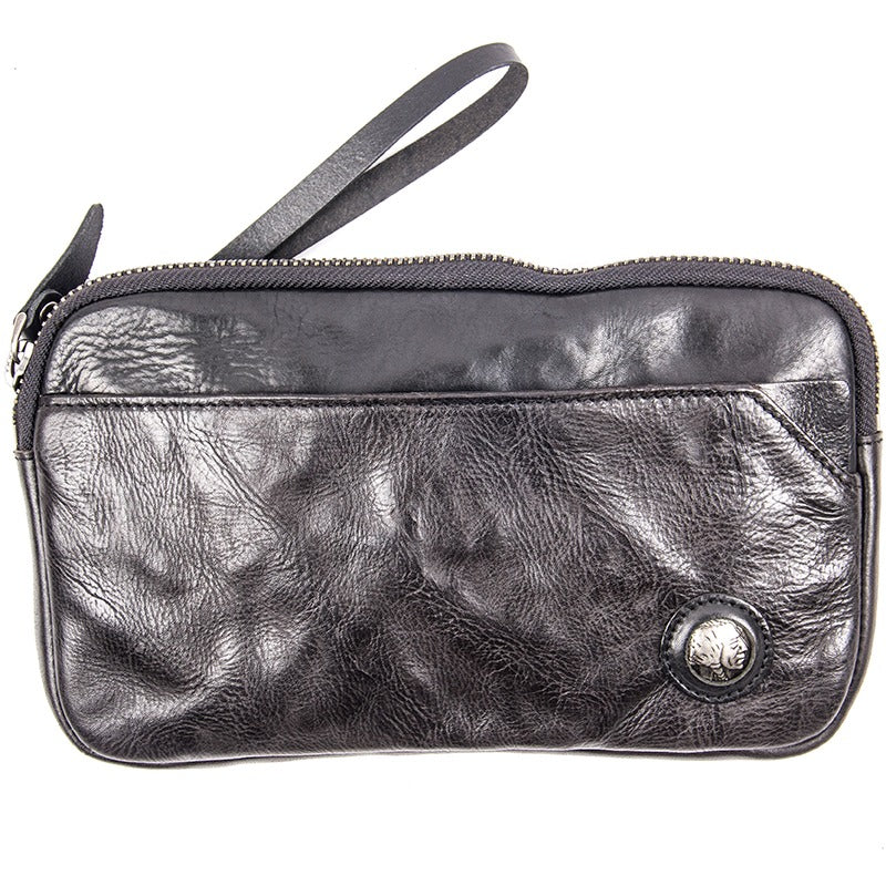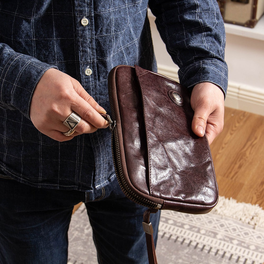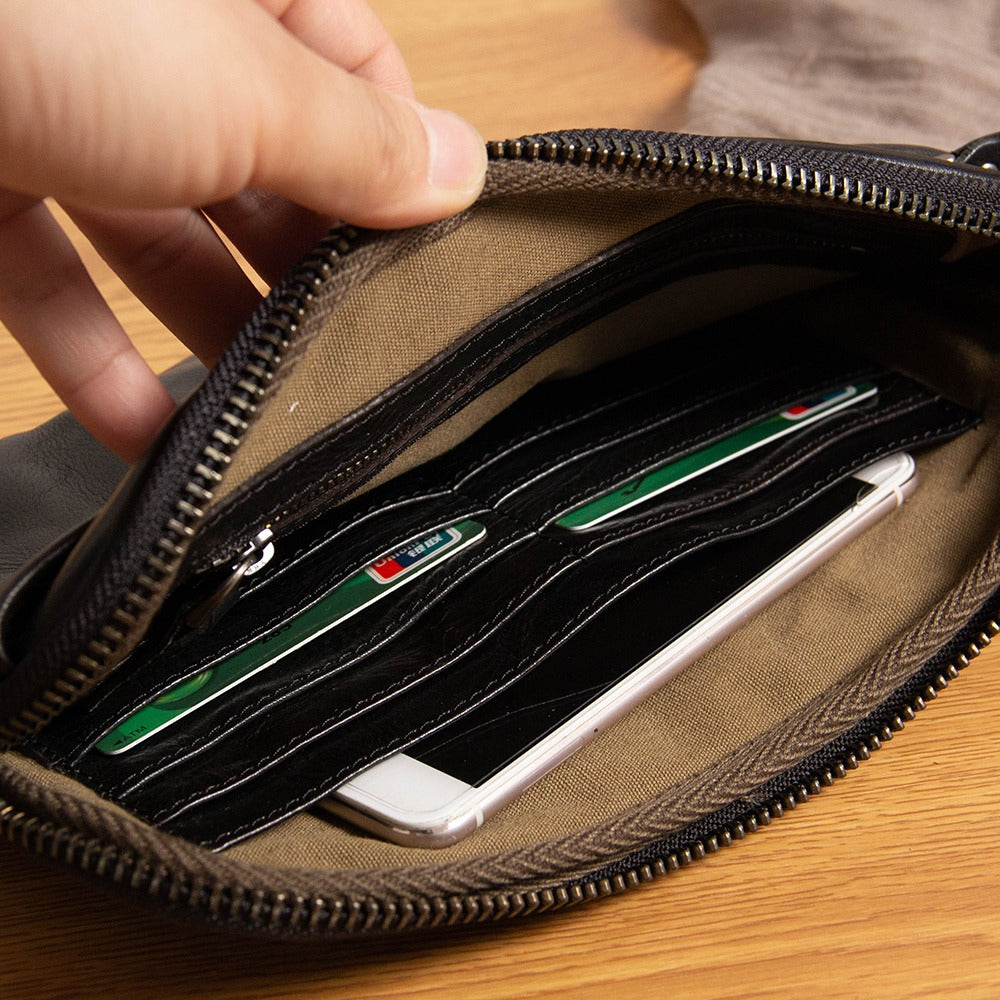 Design: Black Leather Mens Clutch Wallet Wristlet Wallet Zipper Wallet Clutch for Men
