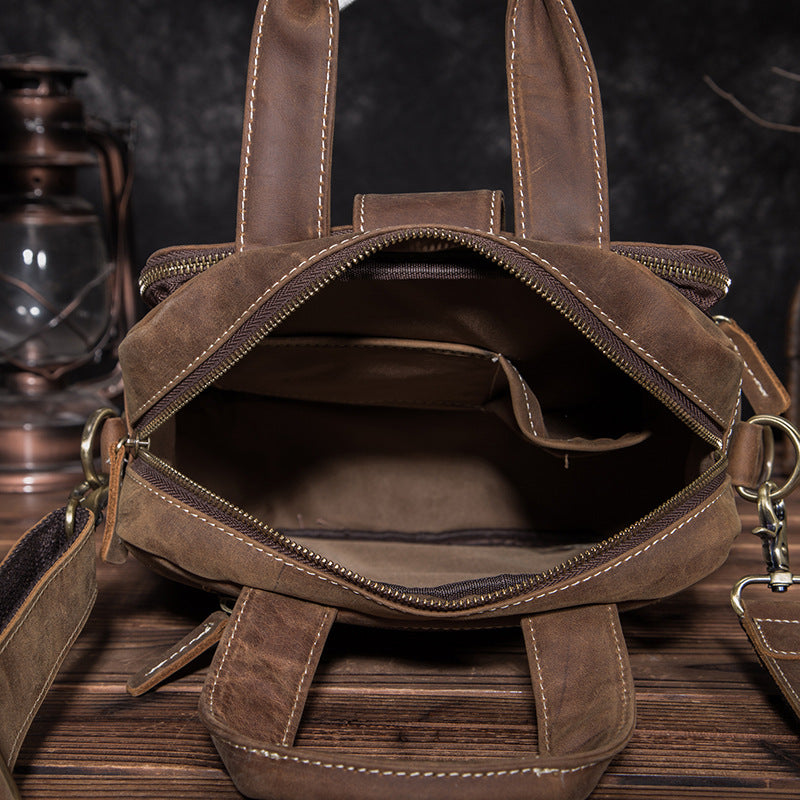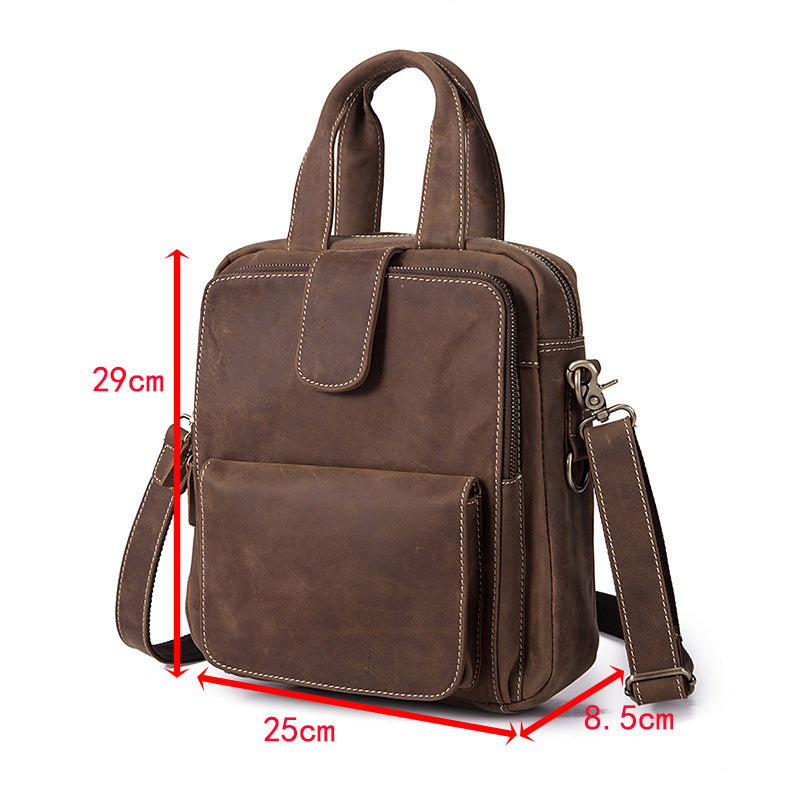 Design: Leather Mens Vertical Work Bag Handbag Brown Vertical Small Briefcase Shoulder Bag For MenOverview: