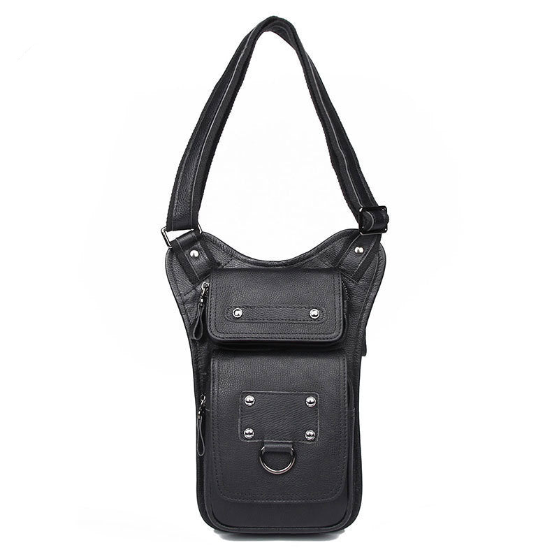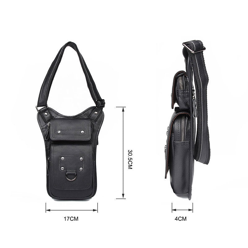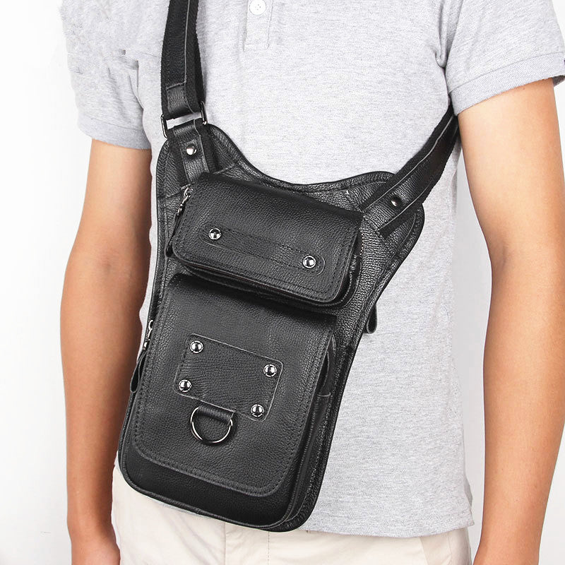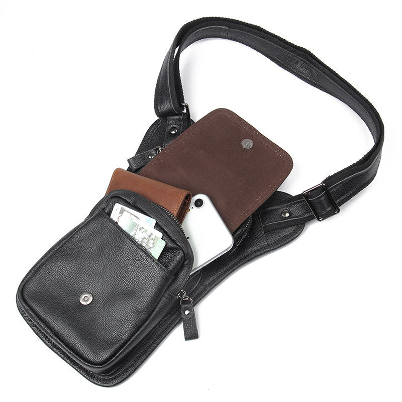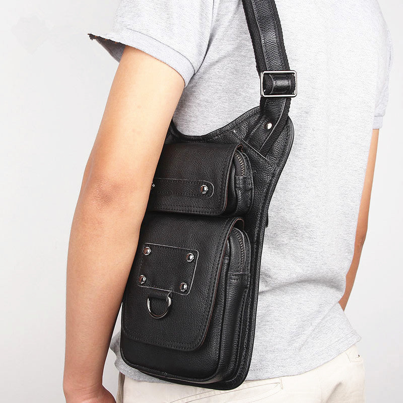 Style: Black Leather Men's Sling Bag Shoulder Bag Chest Bag One Shoulder Backpack For Men