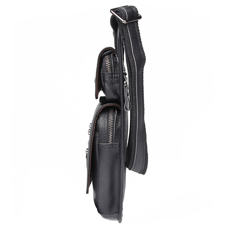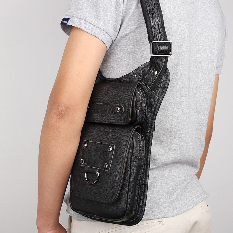 Design: Black Leather Men's Sling Bag Shoulder Bag Chest Bag One Shoulder Backpack For Men