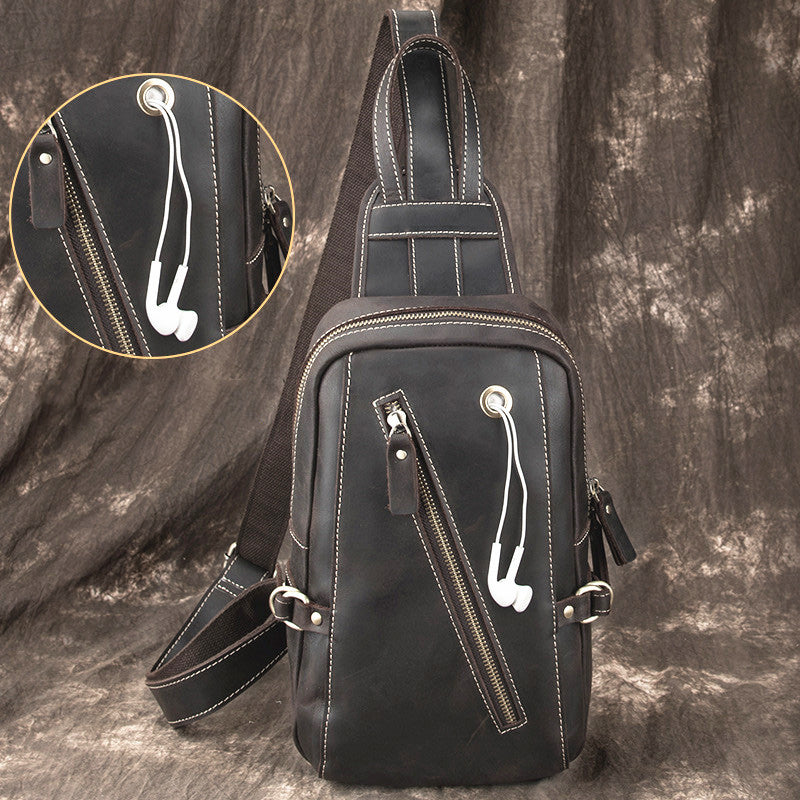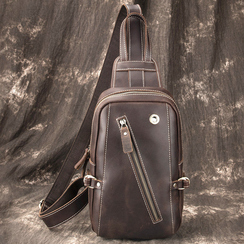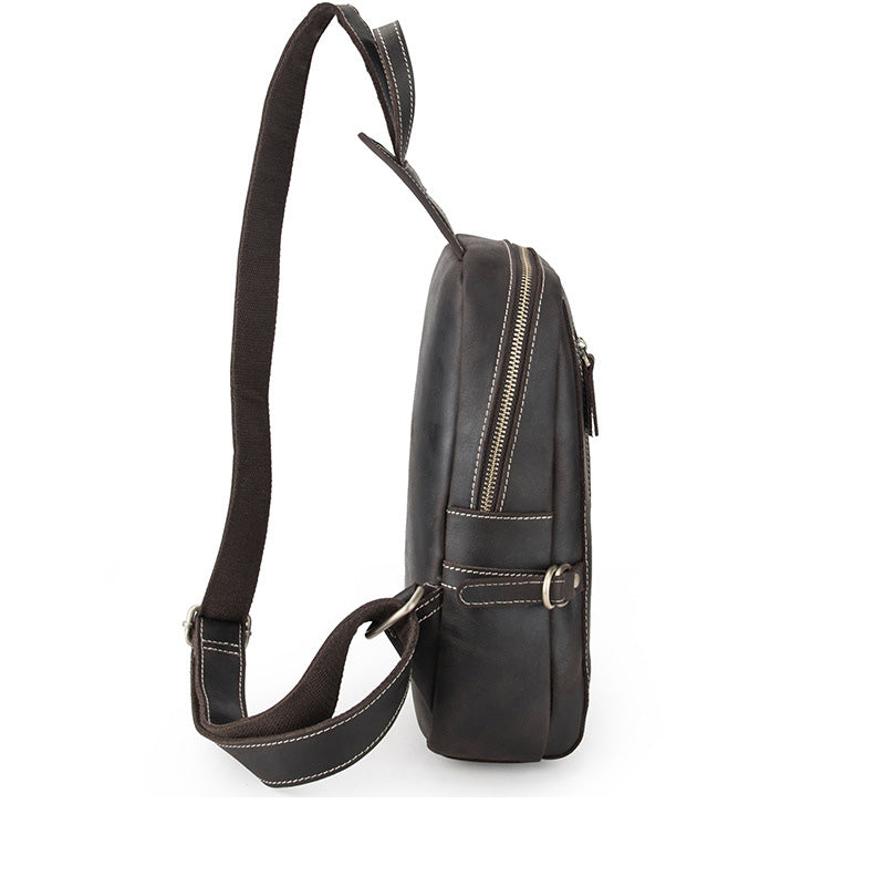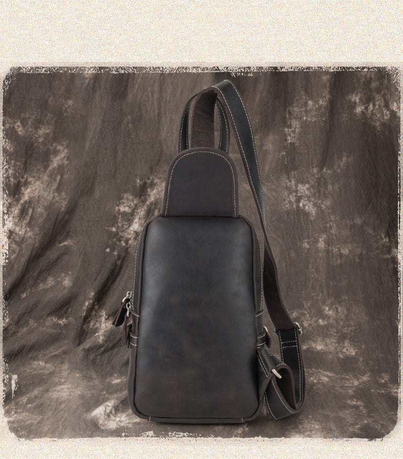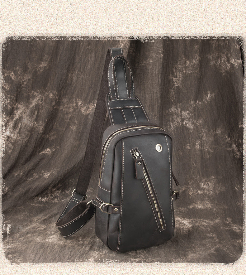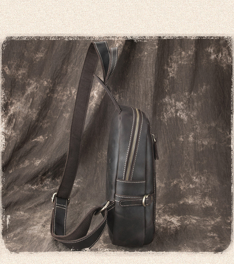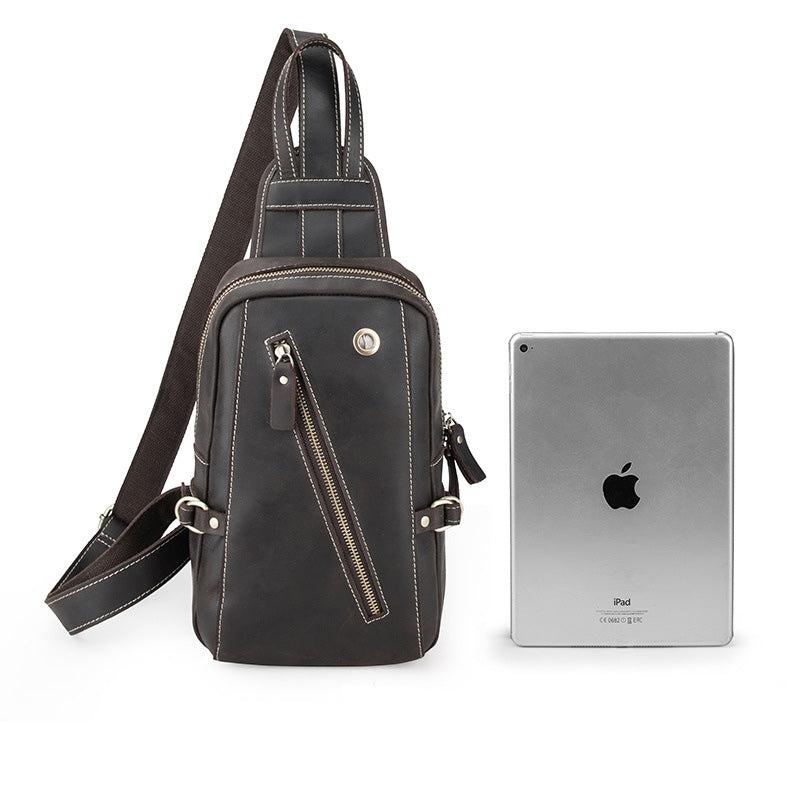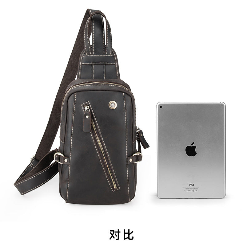 Style: Black LEATHER MENS Sling Bags Sling Pack 8 inches One Shoulder Backpack Blue Chest Bag For Men