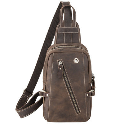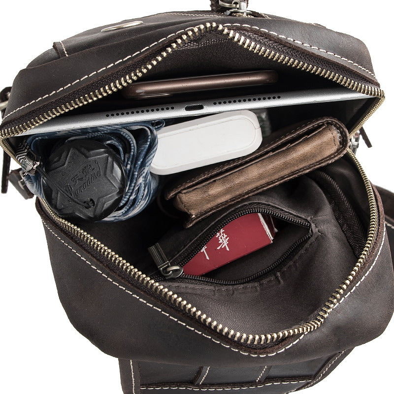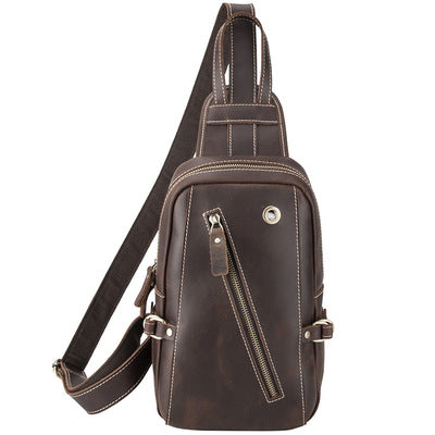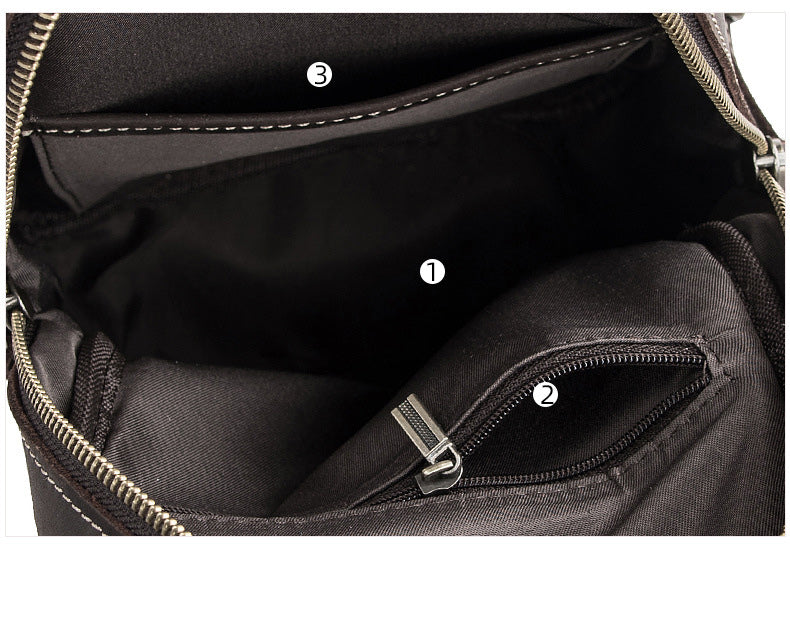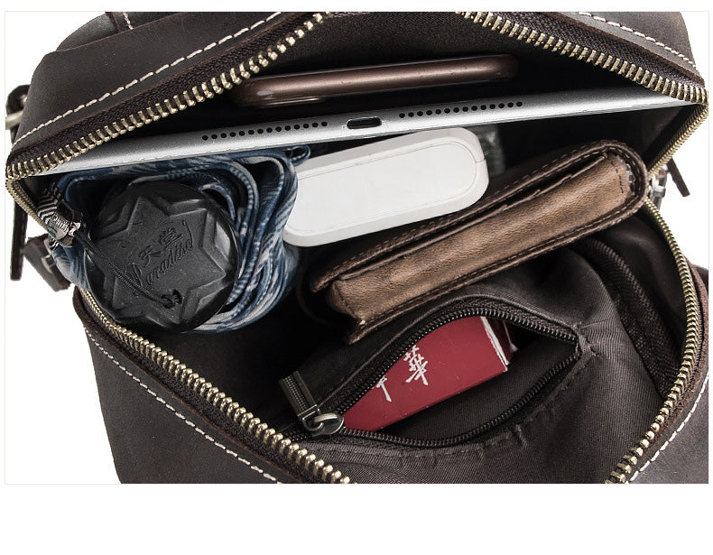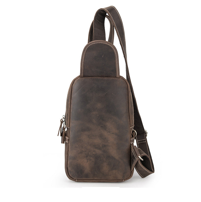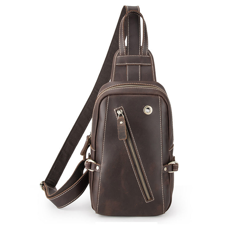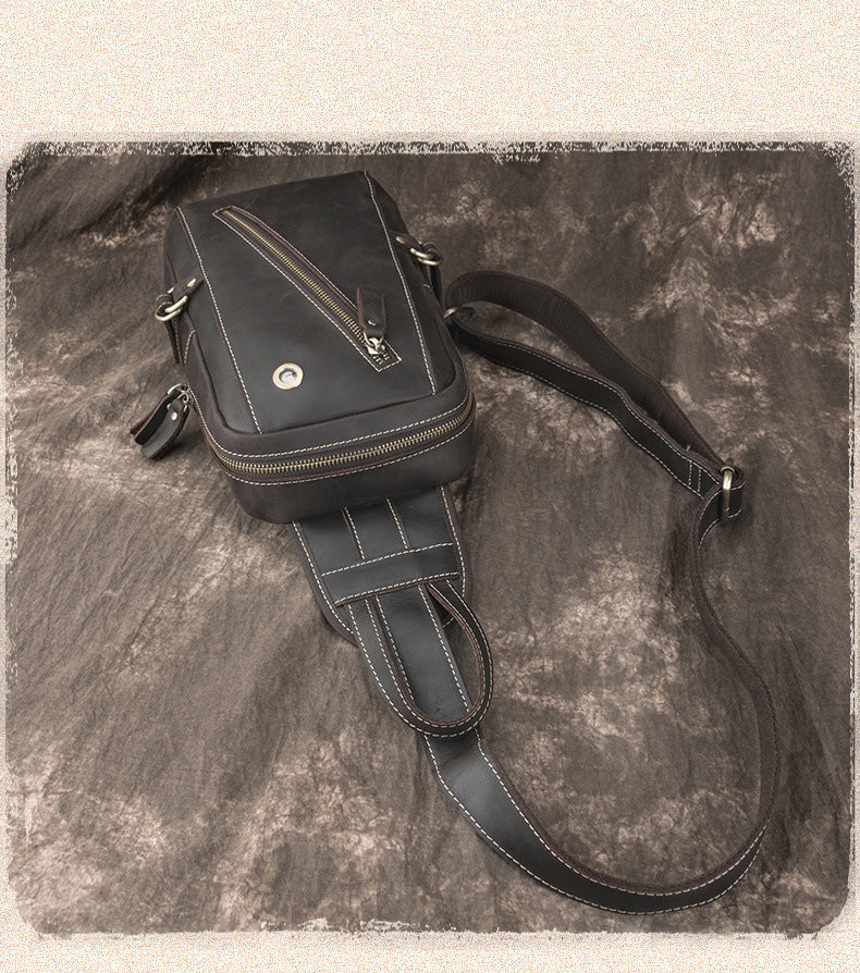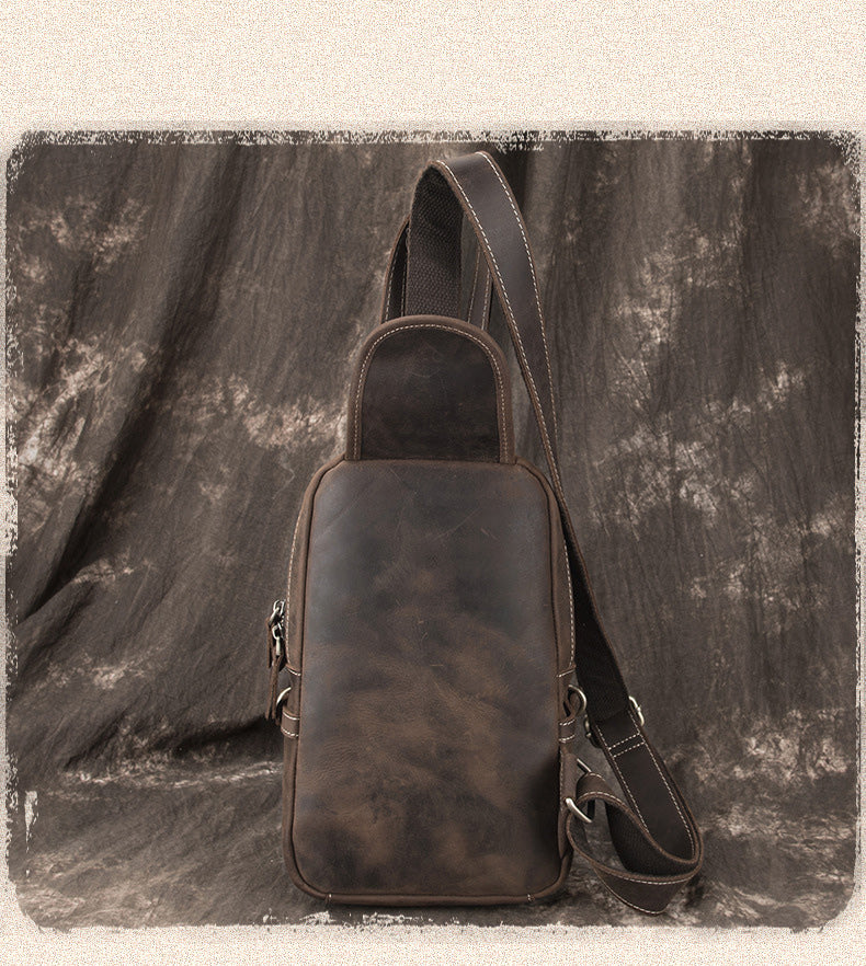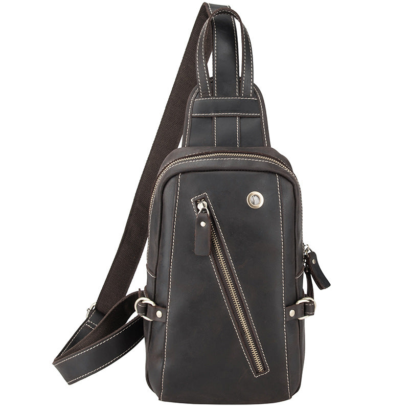 Style: Black LEATHER MENS Sling Bags Sling Pack 8 inches One Shoulder Backpack Blue Chest Bag For Men