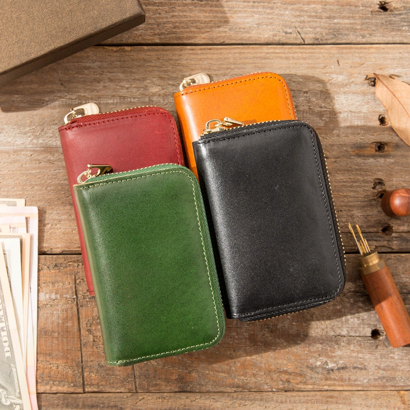Style: Black Leather Mens Small MultiCard Wallet Red Front Pocket Wallet Brown Zipper Coin billfold Wallet For Men