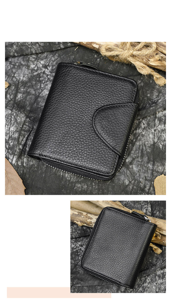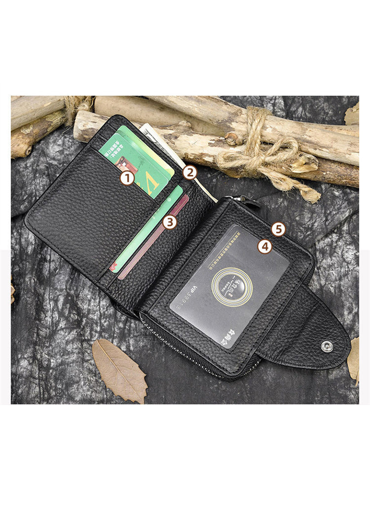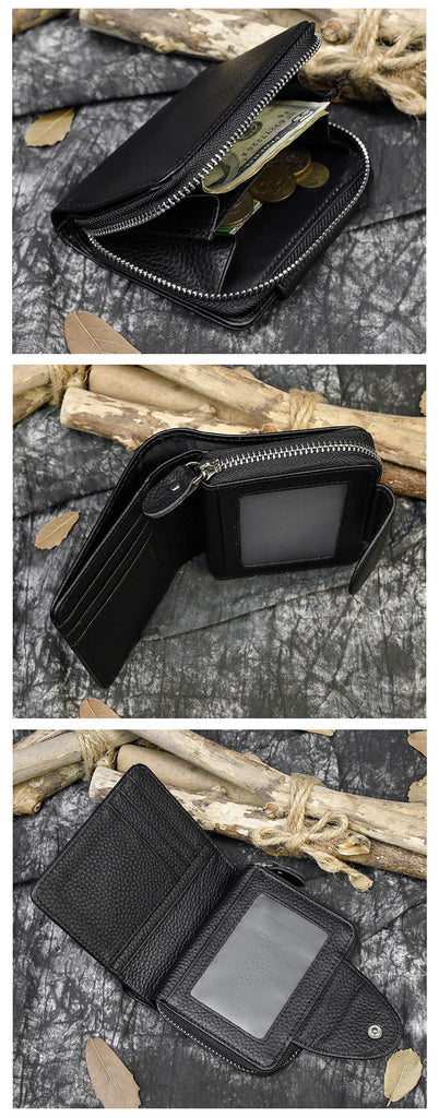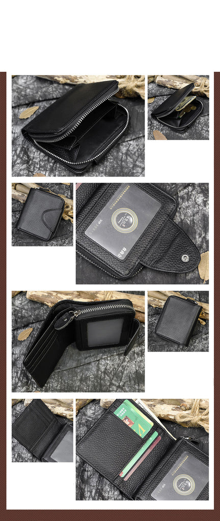 Style: Black Leather Mens Around Zipper Billfold Wallet Zipper Bifold for Men