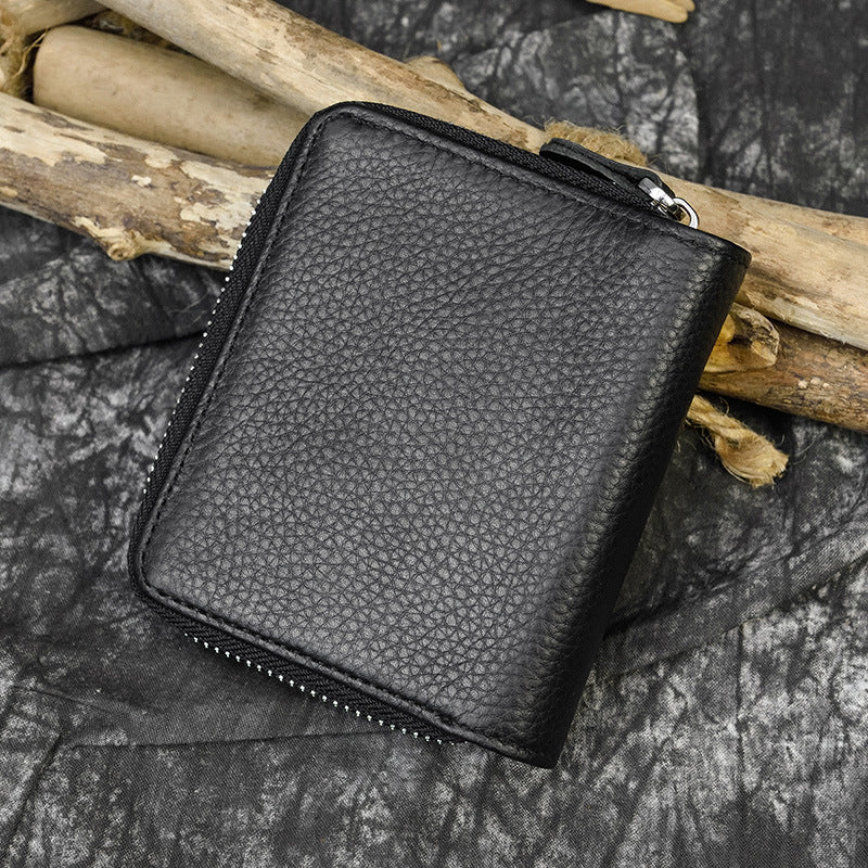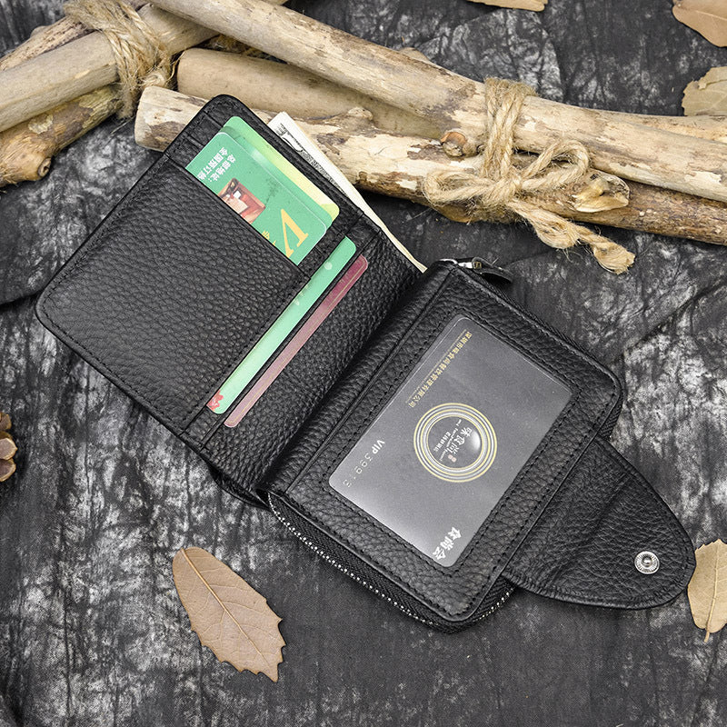 Design: Black Leather Mens Around Zipper Billfold Wallet Zipper Bifold for Men