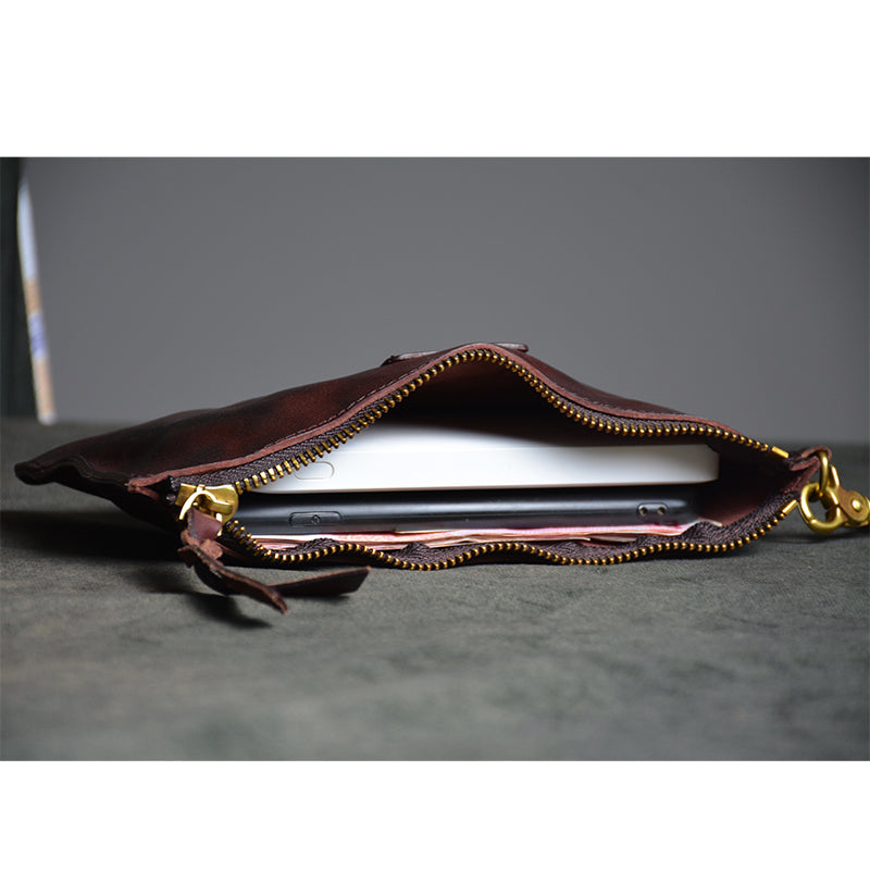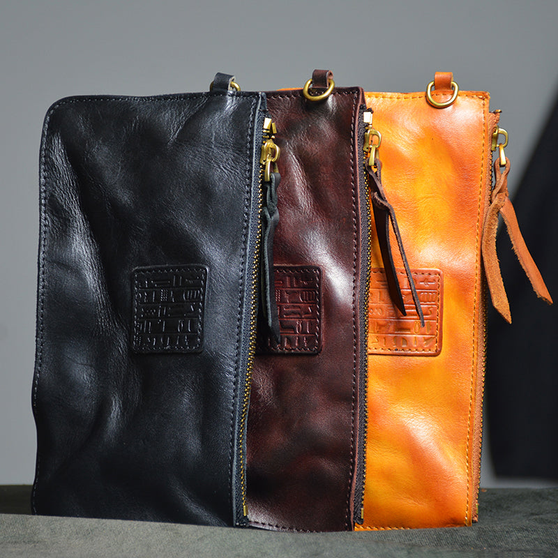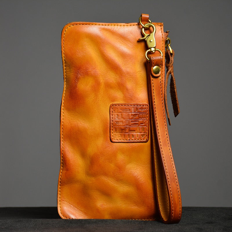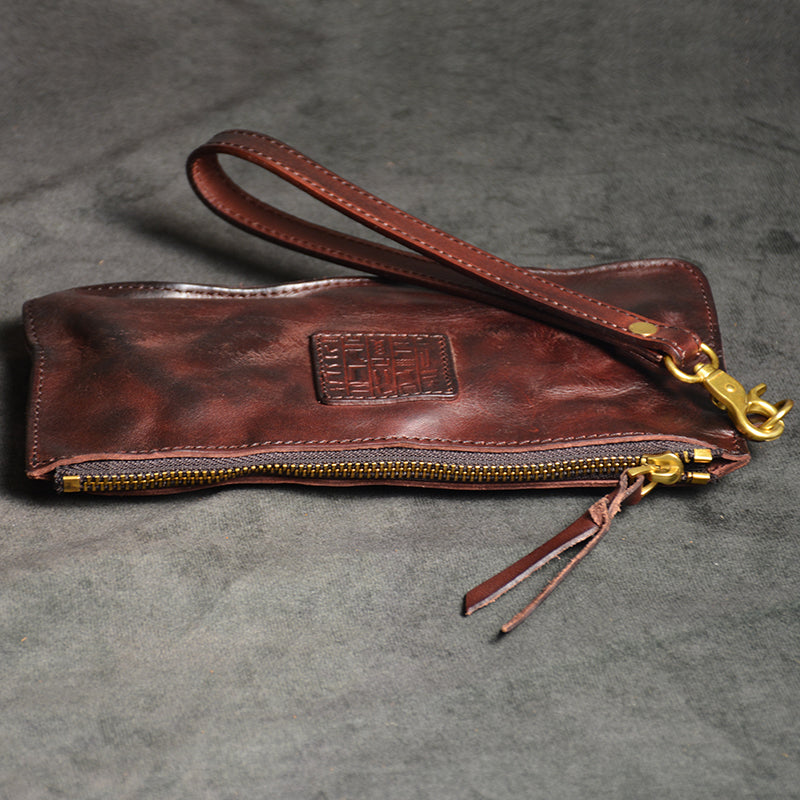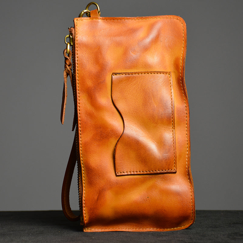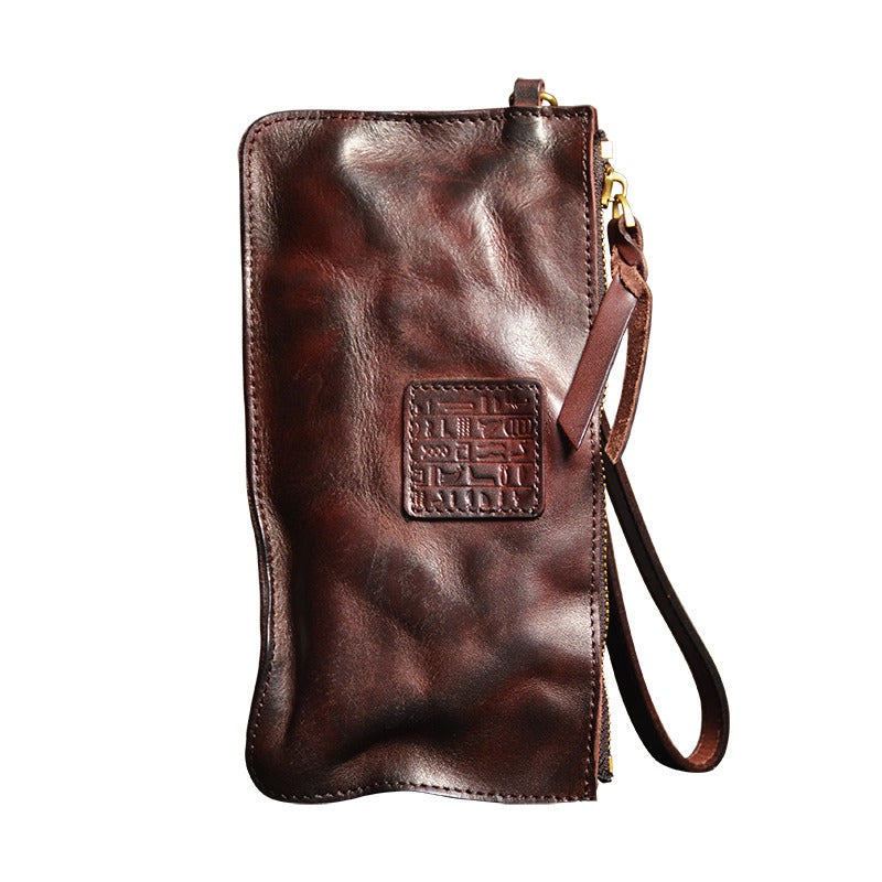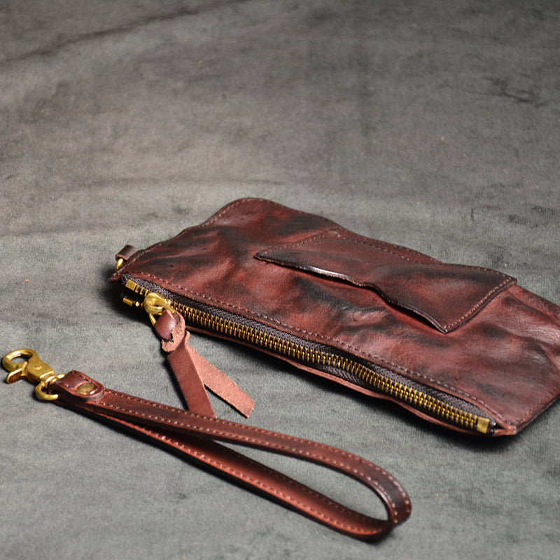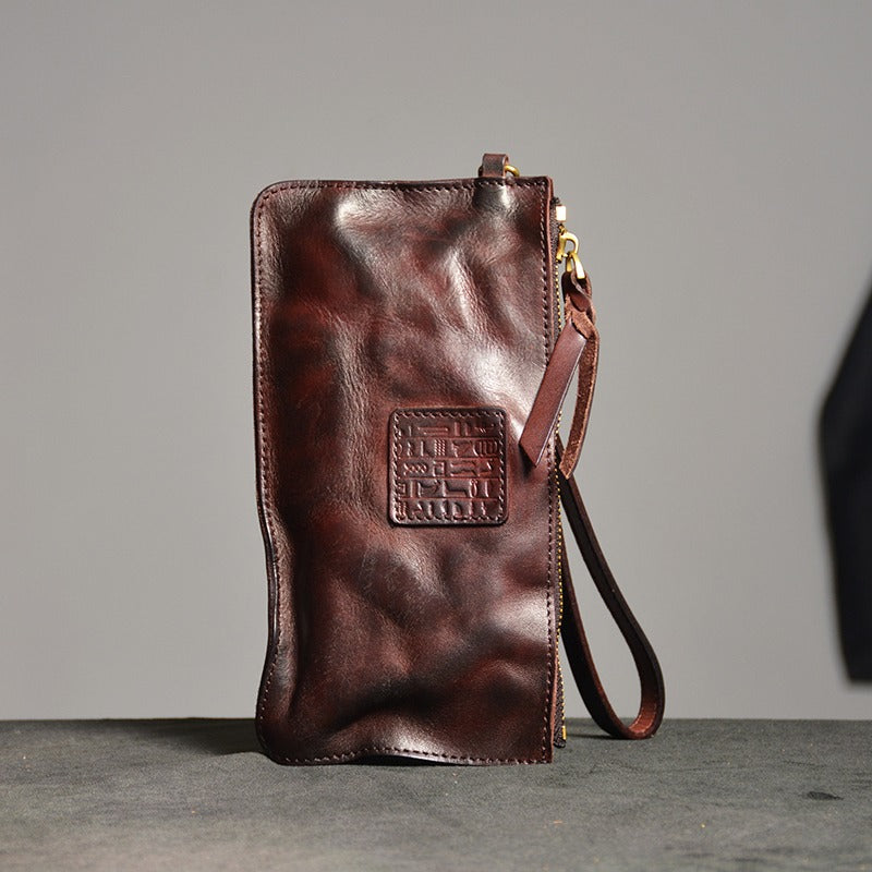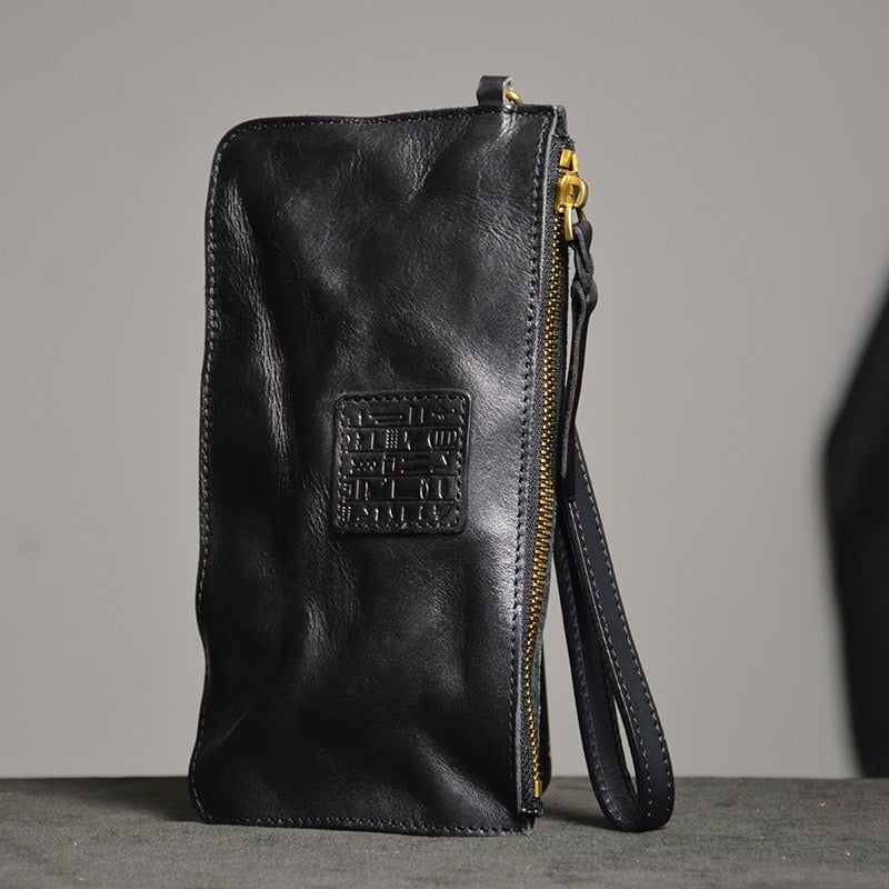 Design: Black Leather Mens Zipper Clutch Wallet Wrinkled Wristlet Wallet Wallet Clutch for Men