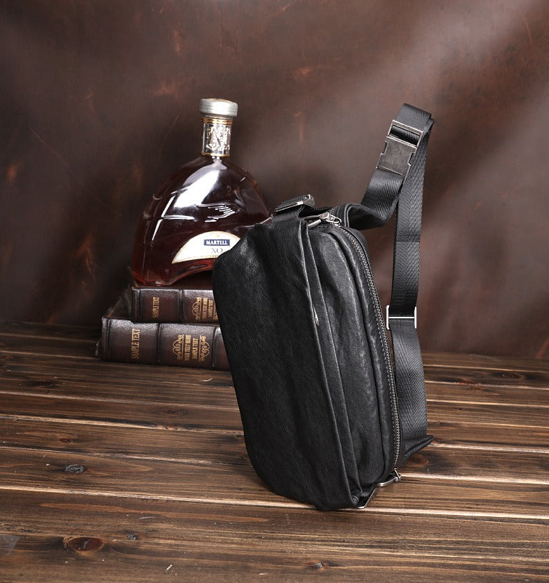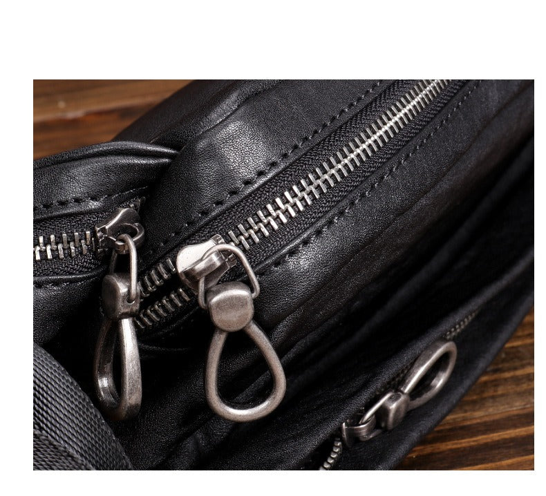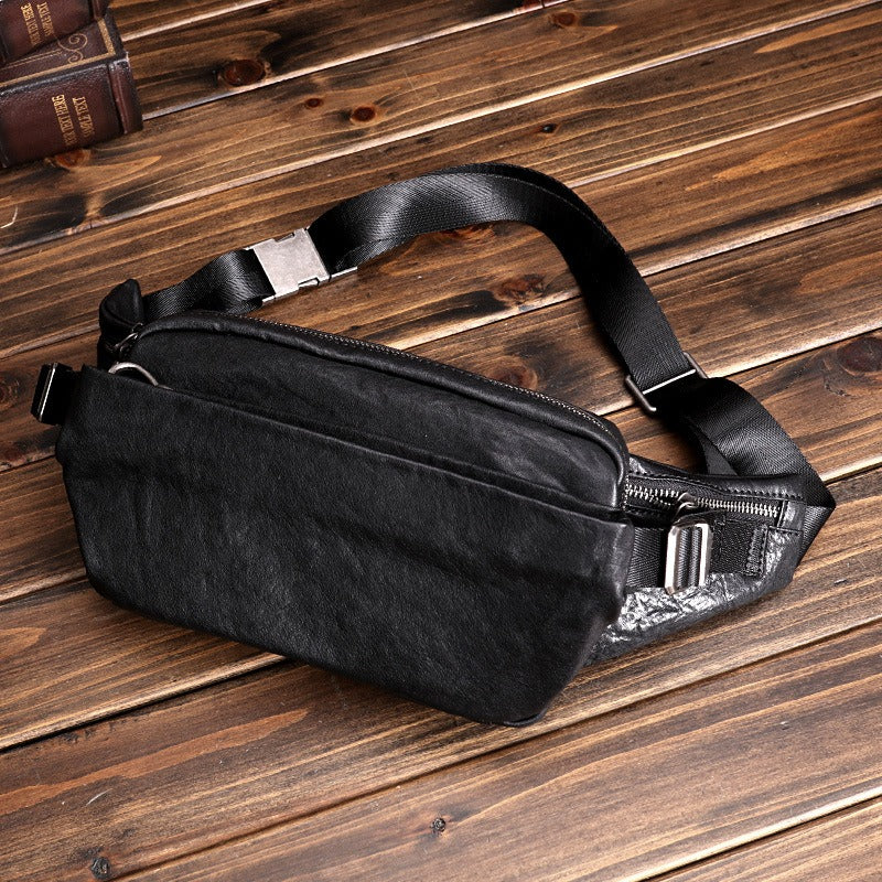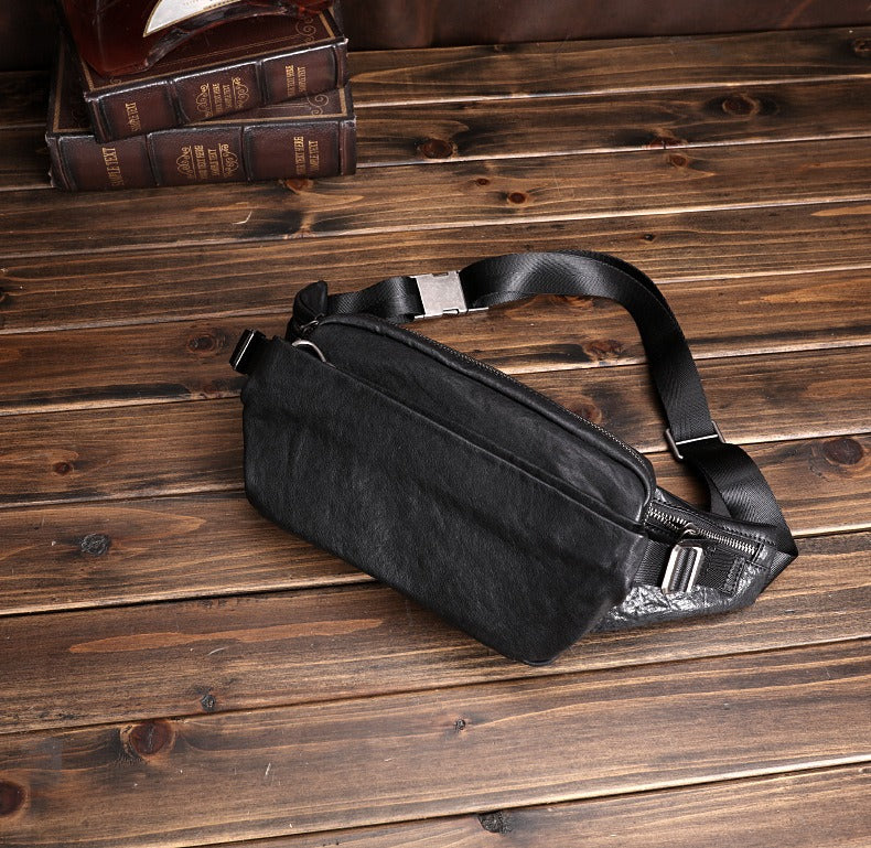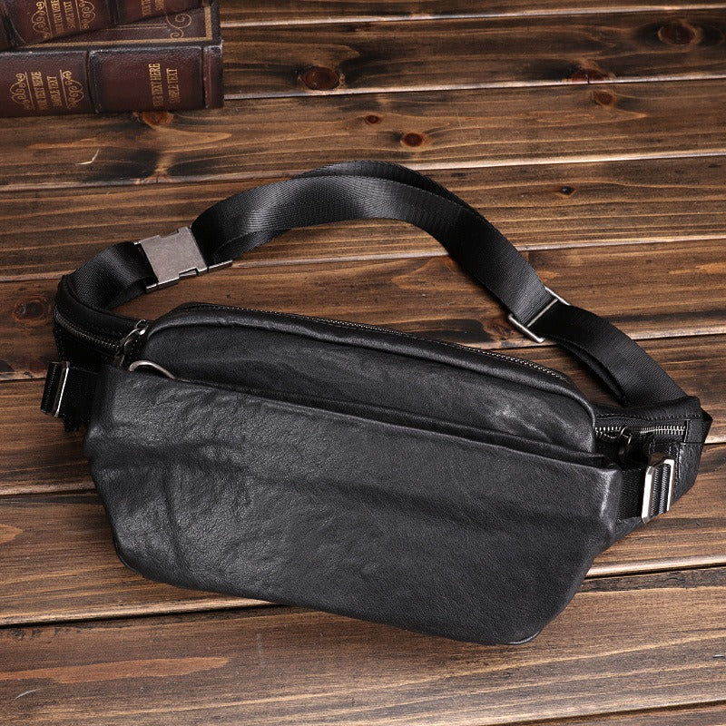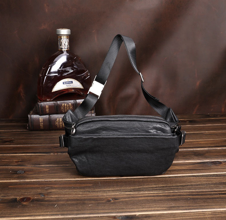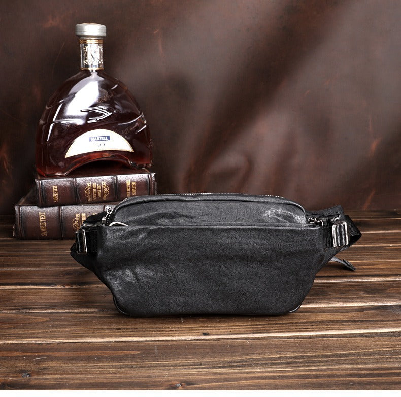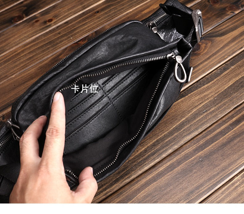Design: Black Leather Waist Bags Mens Slim Fanny Packs Hip Packs Sling Bags Sling Pack for Men