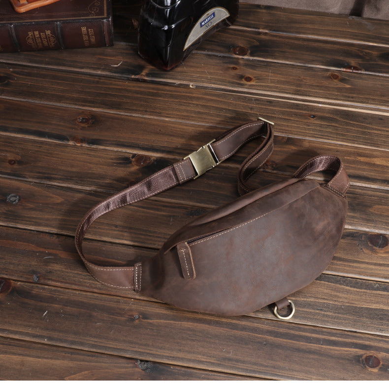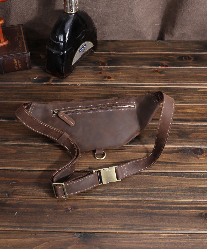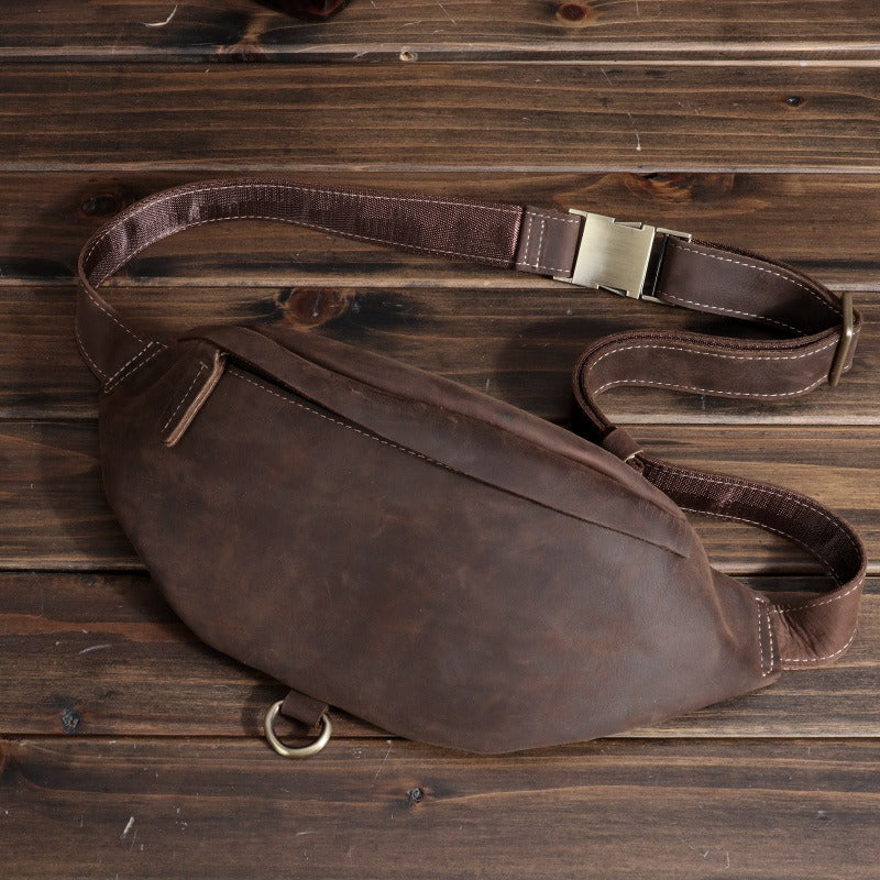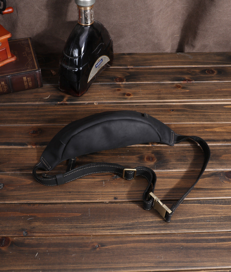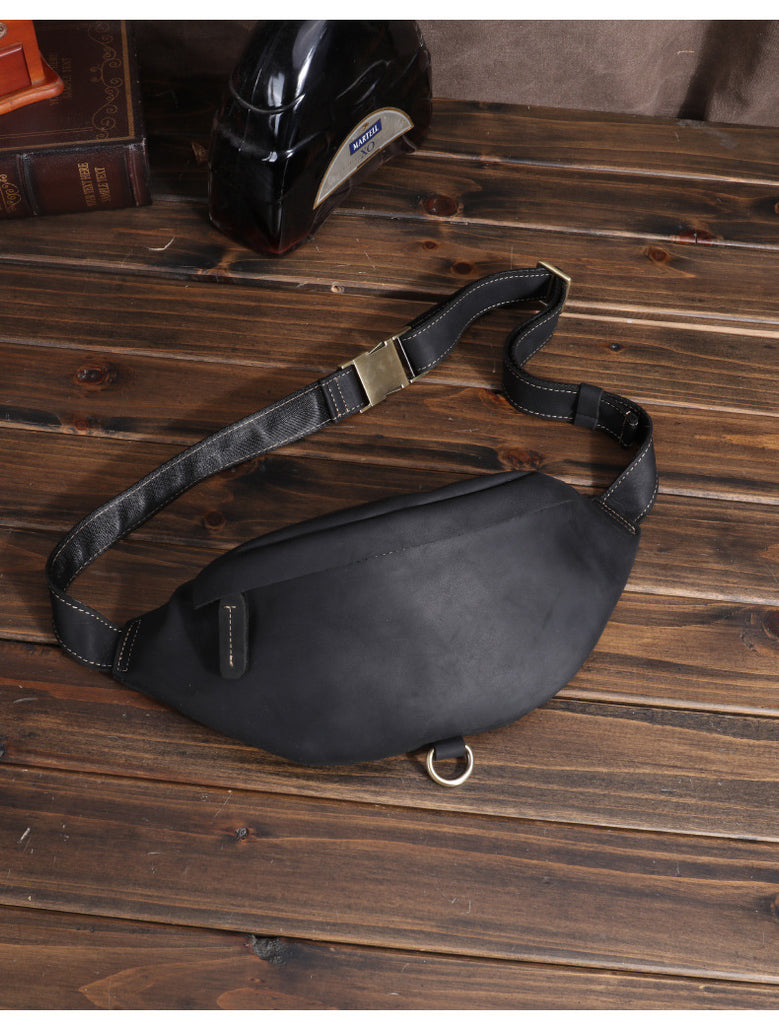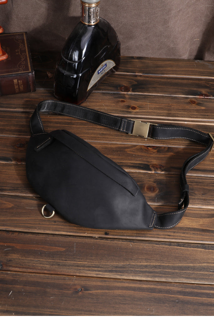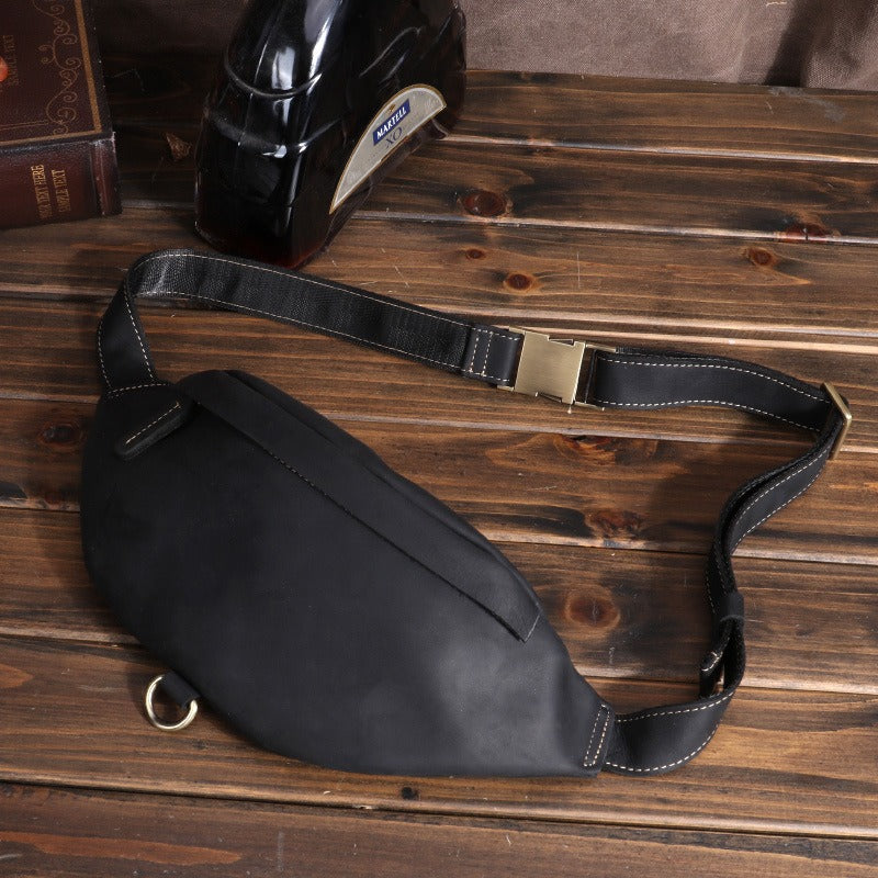 Design: Black Mens Fanny Pack Leather Bum Bag Black Hip Pack Black Chest Bag For Men