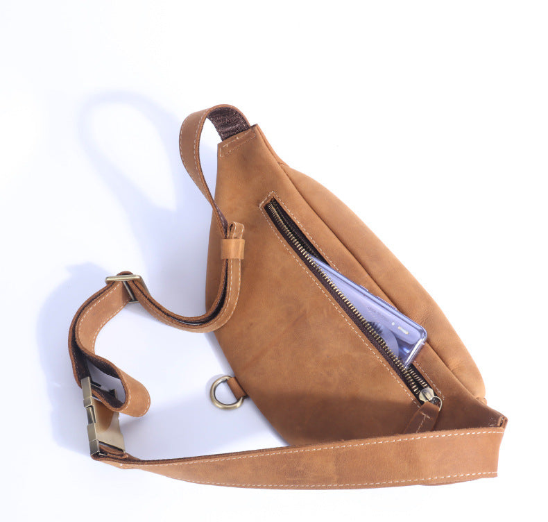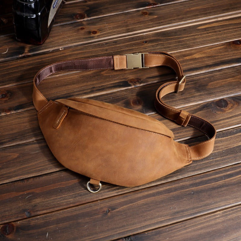 Style: Black Mens Fanny Pack Leather Bum Bag Black Hip Pack Black Chest Bag For Men