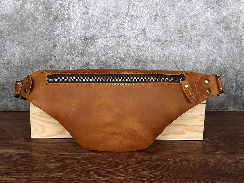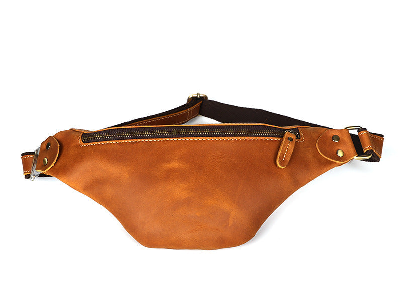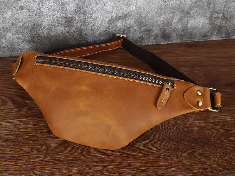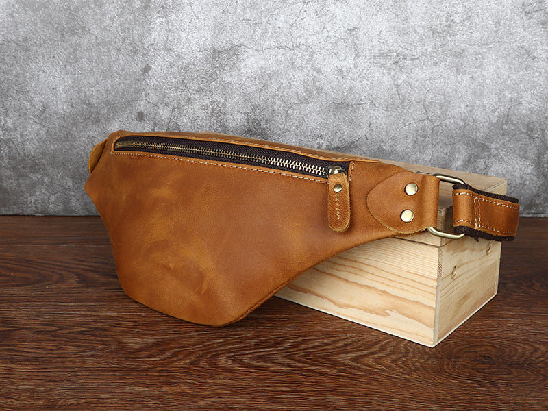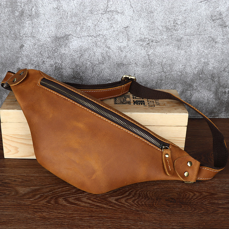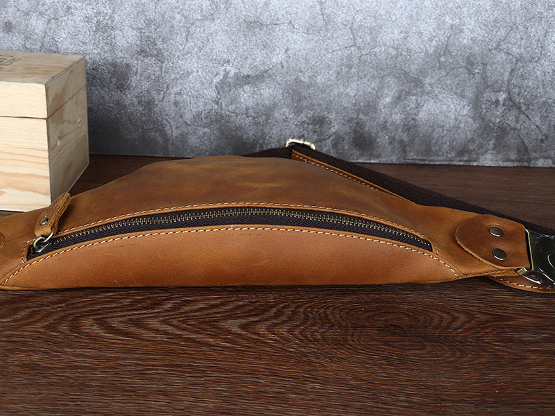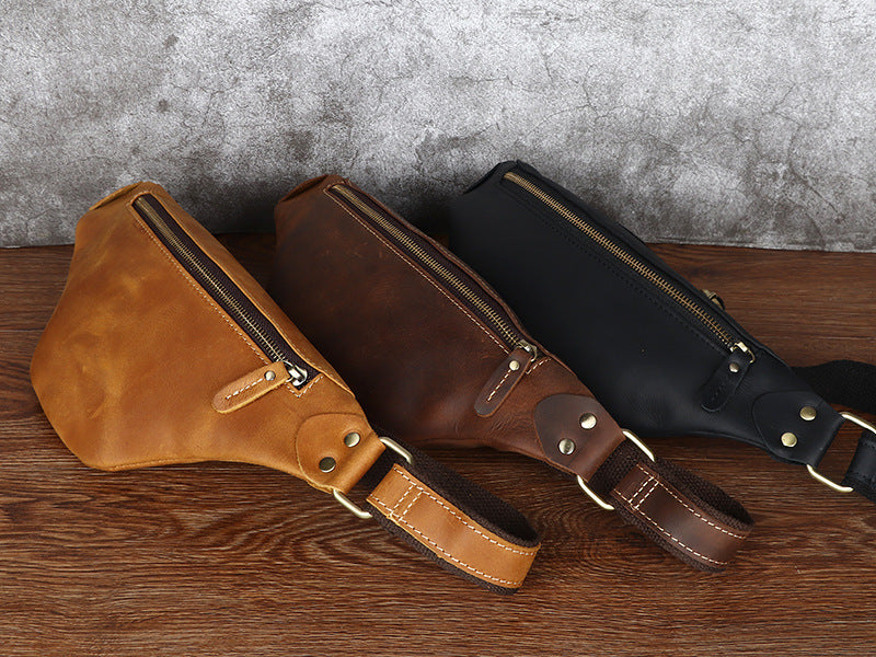 Design: Tan Mens Fanny Pack Leather Slim Bum Bag Black Hip Pack Chest Bag For Men