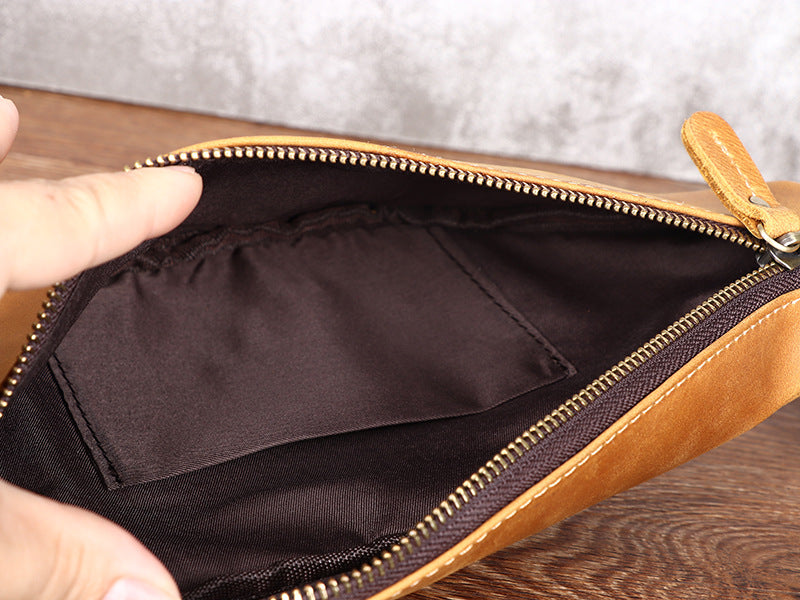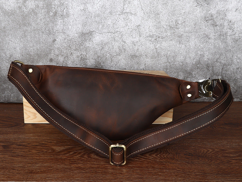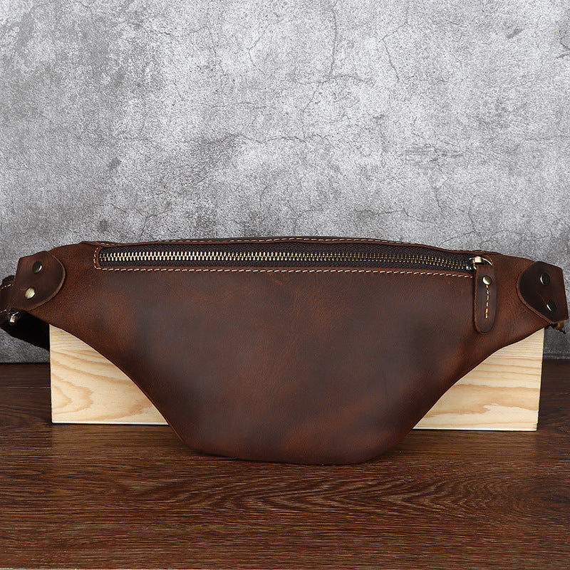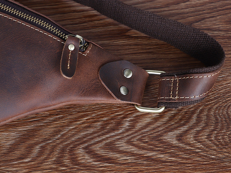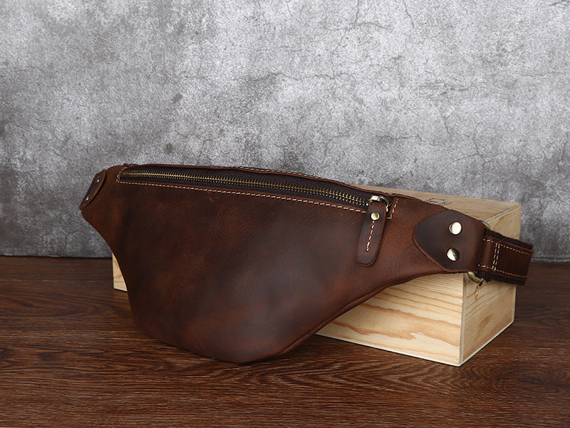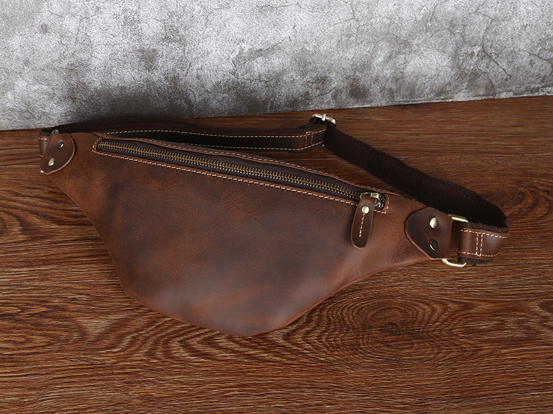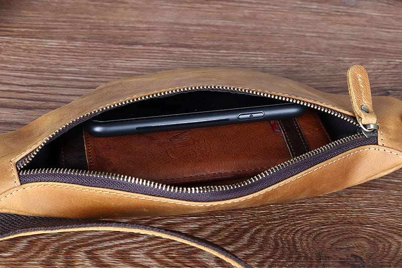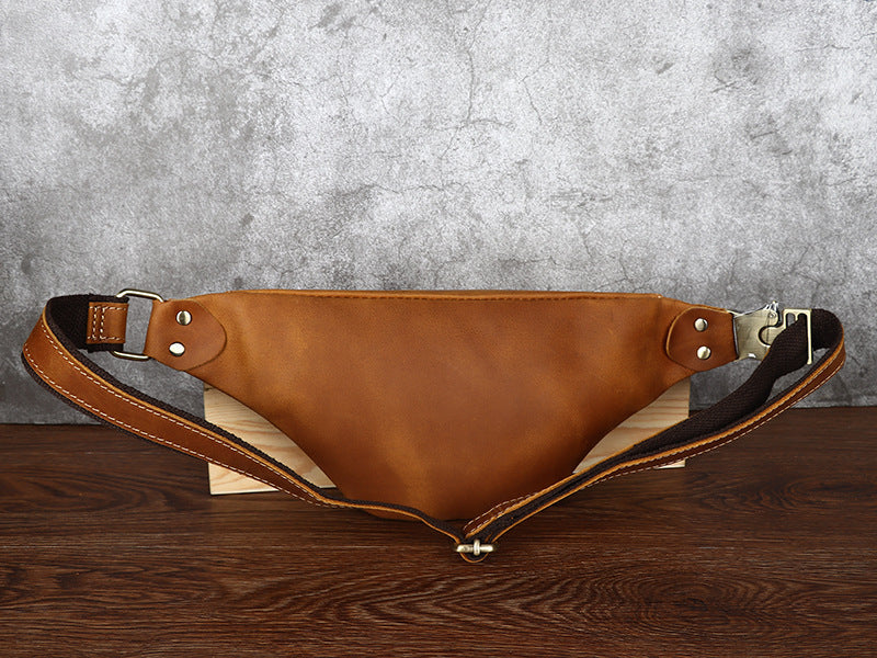 Design: Tan Mens Fanny Pack Leather Slim Bum Bag Black Hip Pack Chest Bag For Men
