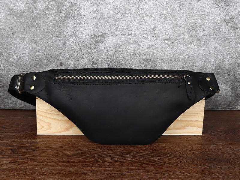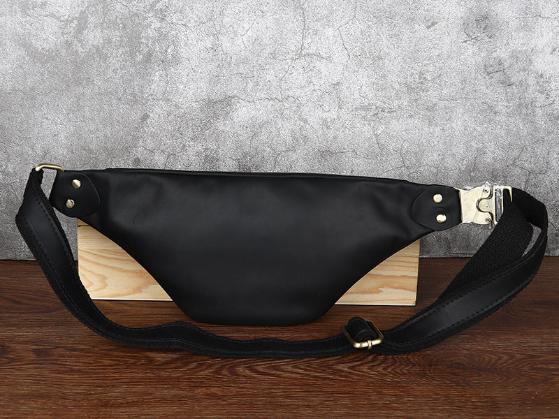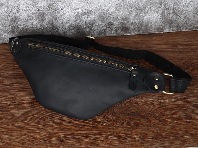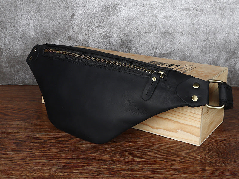 Black Mens Fanny Pack Leather Slim Bum Bag Black Hip Pack Chest Bag For Men