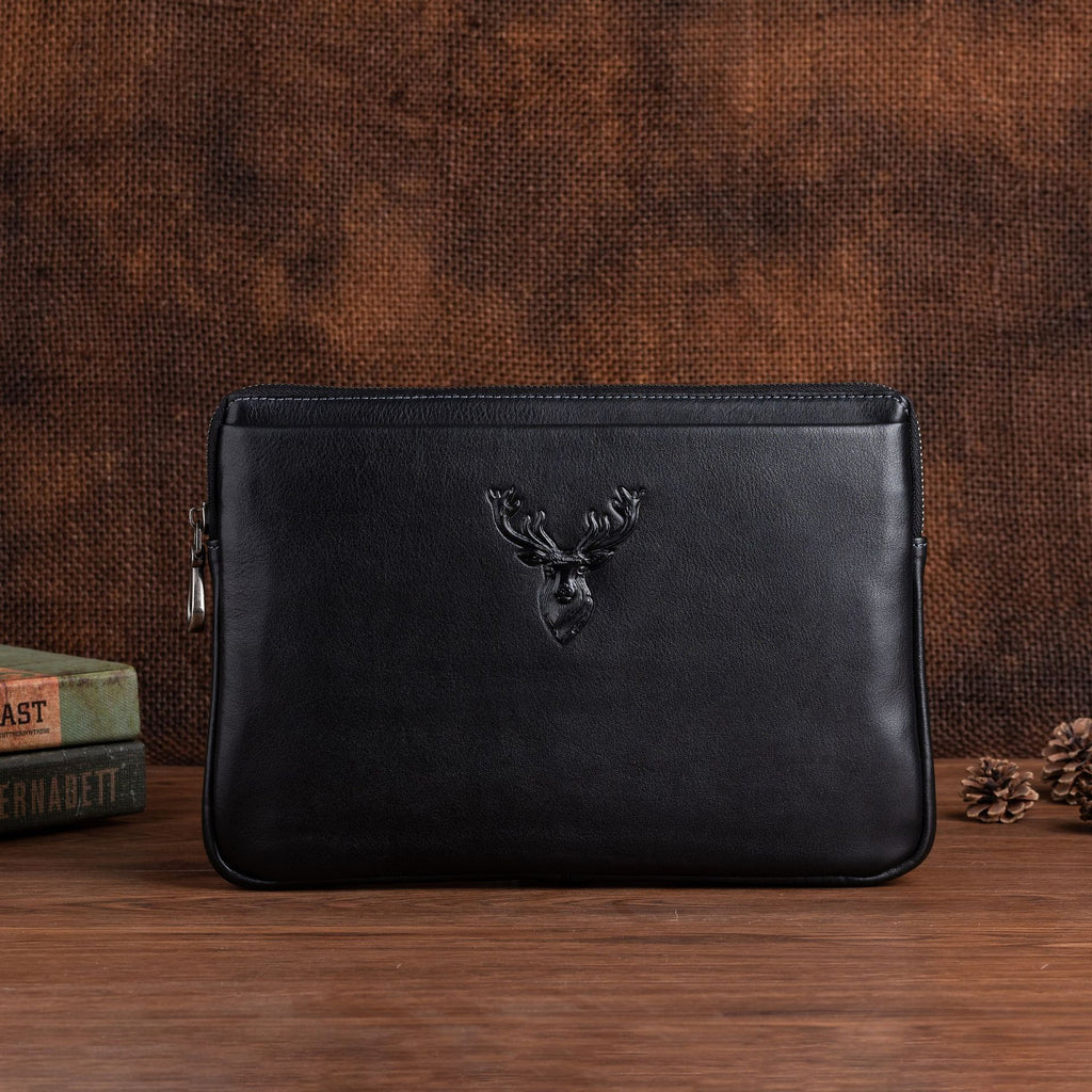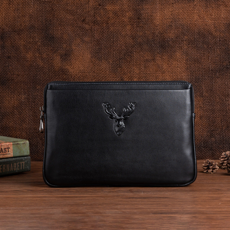 Design: Black Mens Leather Clutch Reindeer Wristlet Wallet Zipper Wallet Clutch for Men