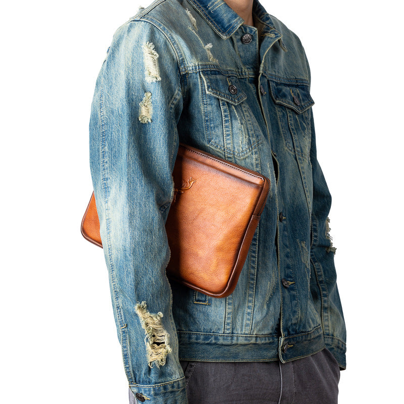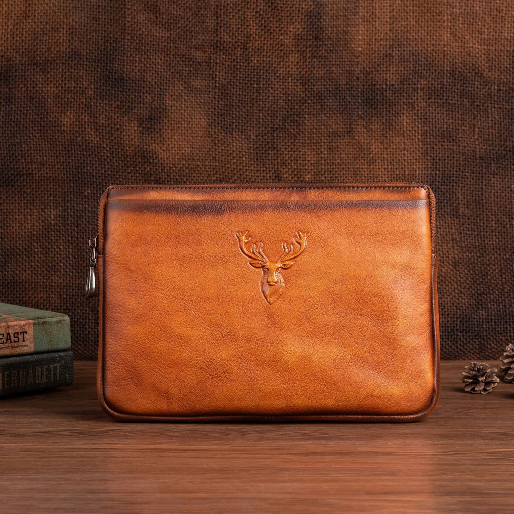 Black Mens Leather Clutch Reindeer Wristlet Wallet Zipper Wallet Clutch for Men