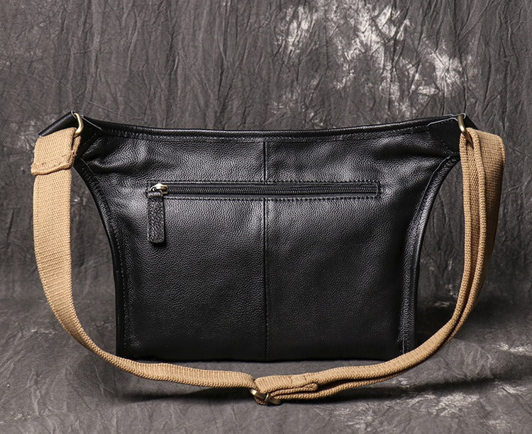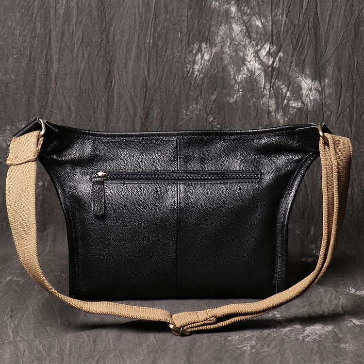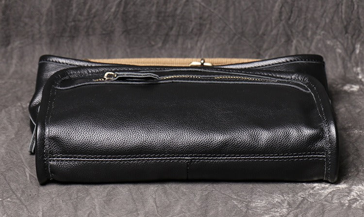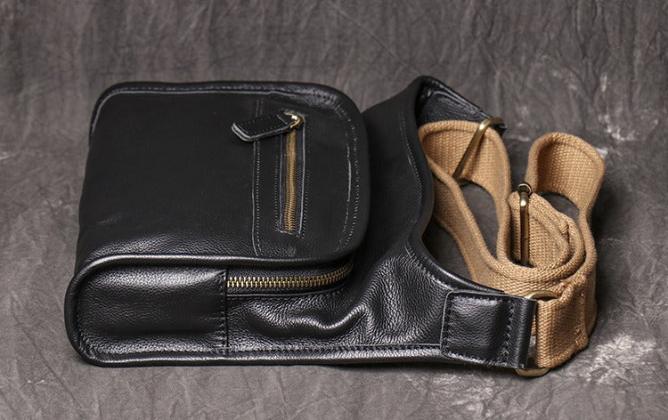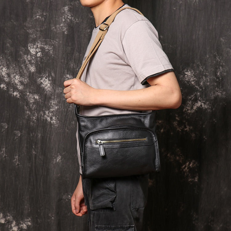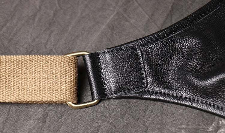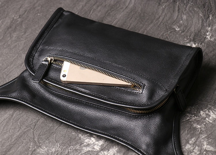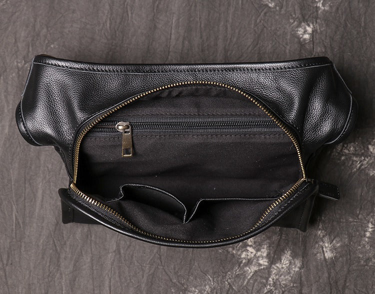 Design: Black Mens Leather Fanny Pack Belt Bag Side Bag Black Crossbody Bag For Men