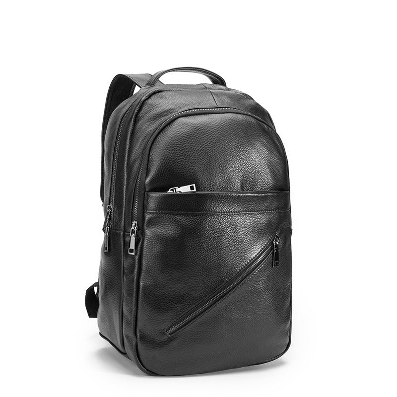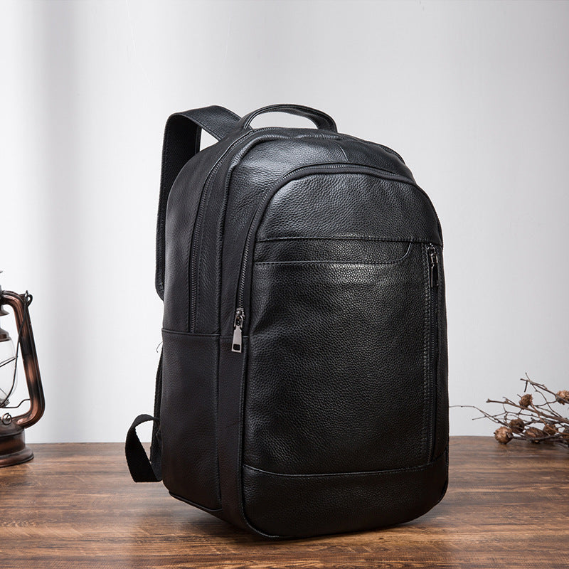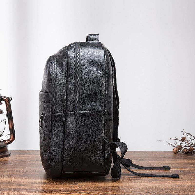 Design: Black Mens Leather College Backpack Laptop Backpack Black Travel Backpack for MenOverview: