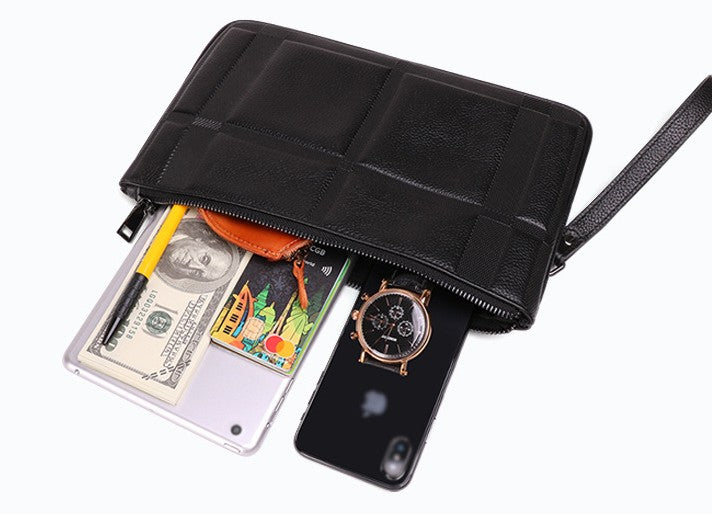 Design: Black Mens Leather Slim Zipper Clutch Wristlet Purse Bag Clutch Bag For Men