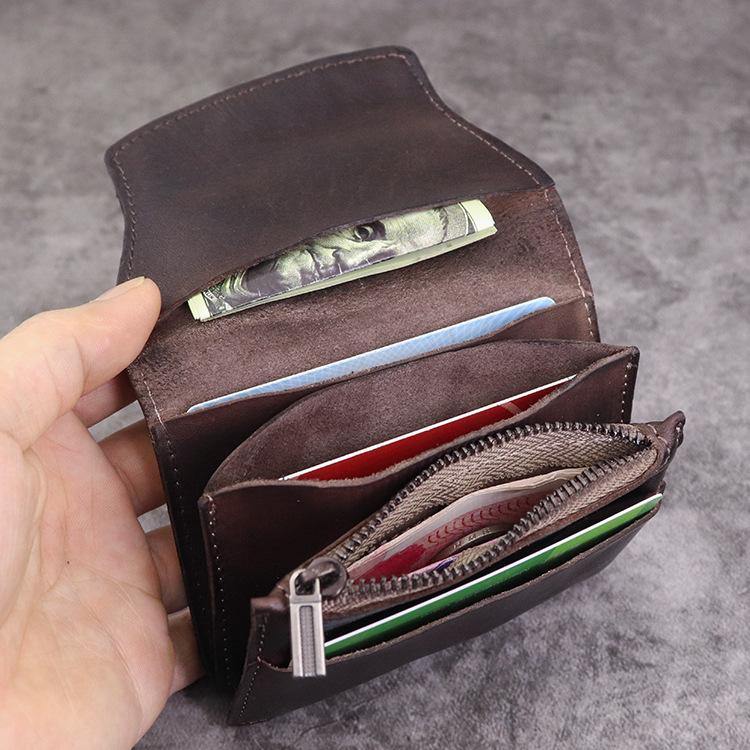 Design: Brown Leather Men Card Holder Wallet Leather Card Holder Slim Wallet with Coin Pocket For Men